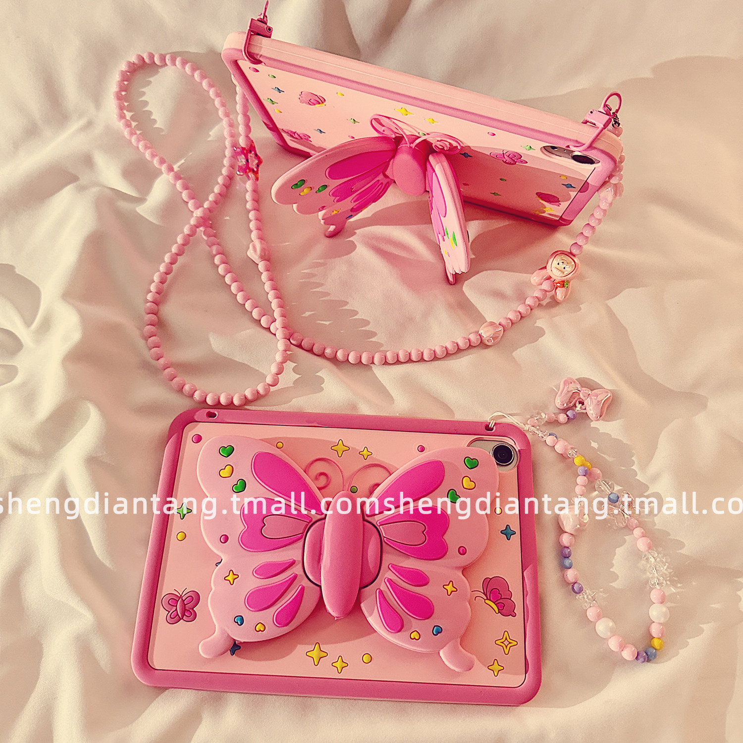 春天少女粉色蝴蝶iPad10保护套2022新款适用苹果iPad10.2寸789代mini6平板Air4/5防摔软壳pro硅胶日韩女款9.7