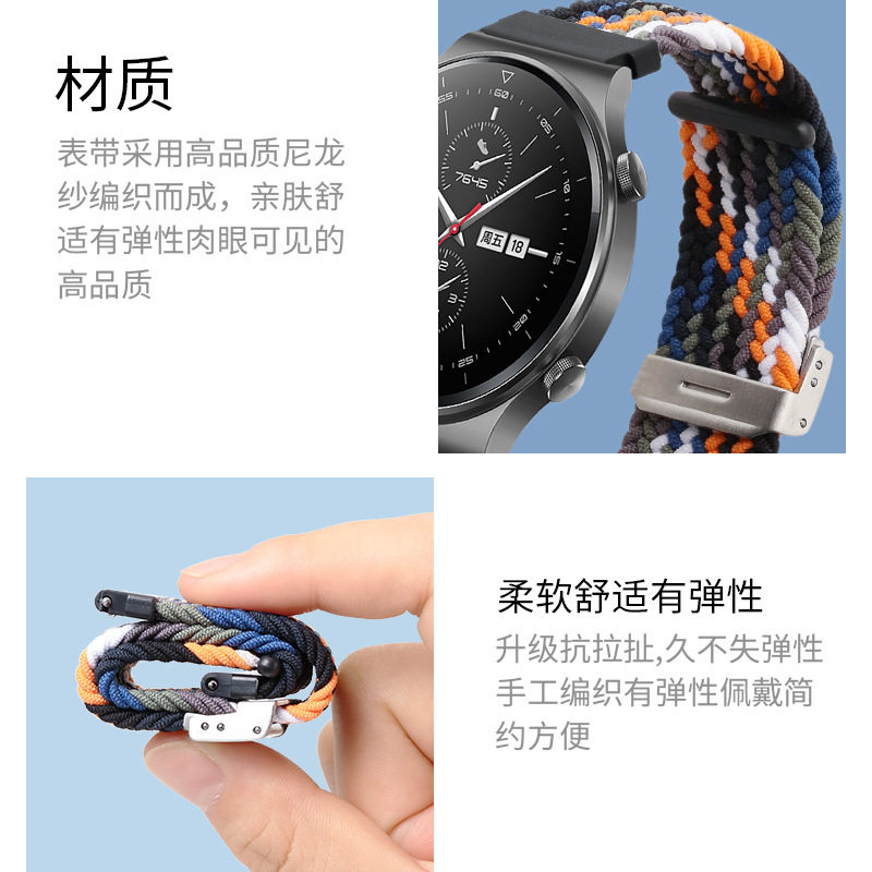 20mm/22mm卡扣弹力编织尼龙表带适用于DW浪琴天梭天王卡西欧华为