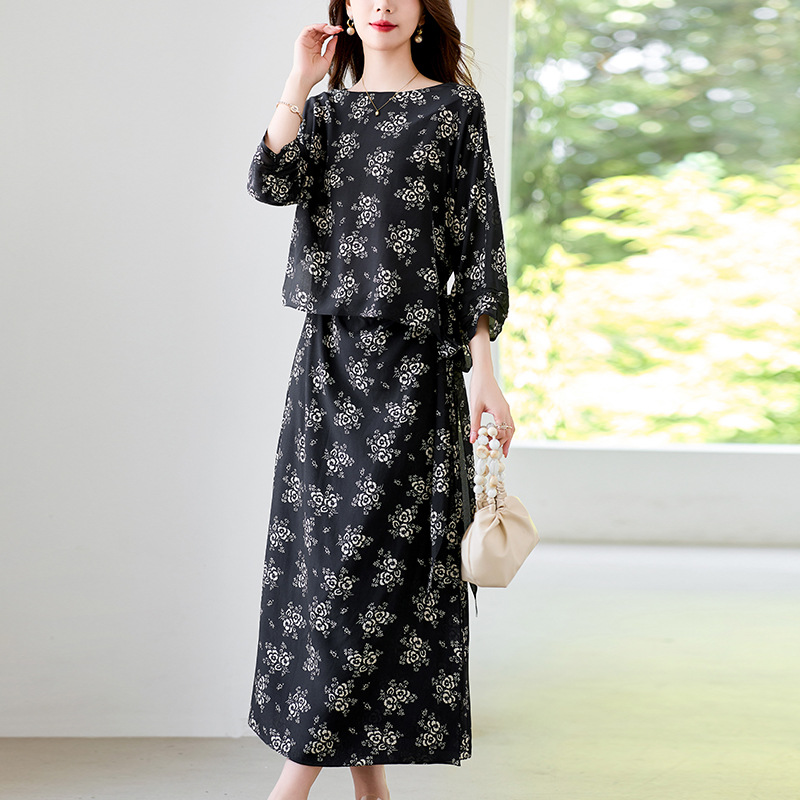 [水墨]真丝假两件连衣裙批桑蚕丝裙子夏季胖妹妹大码女装