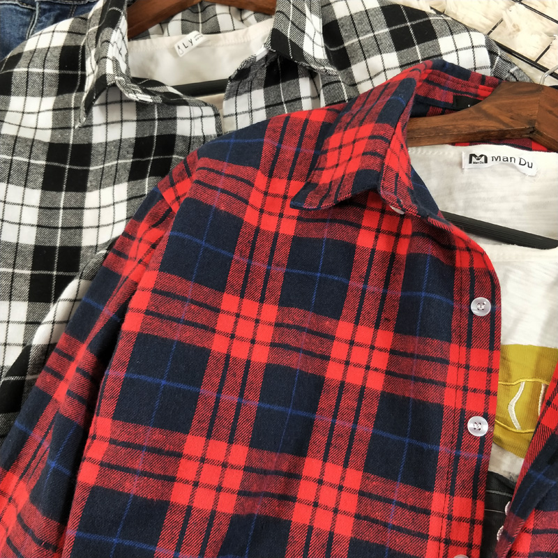 洋气格子外套纯棉大码学生衬衫