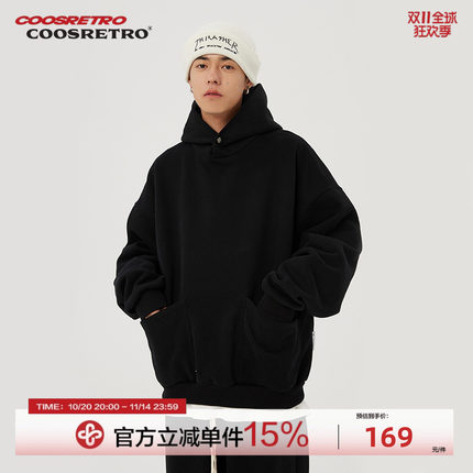 CoosRetro美式复古重磅连帽卫衣男女春秋休闲潮宽松情侣外套