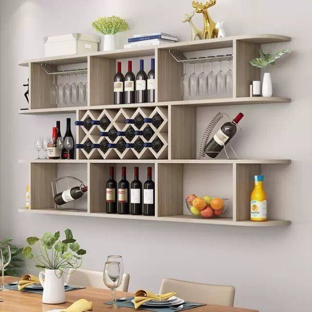 实木餐厅酒柜家用靠墙餐边柜客厅红酒架收纳柜P挂墙隔板壁挂置物