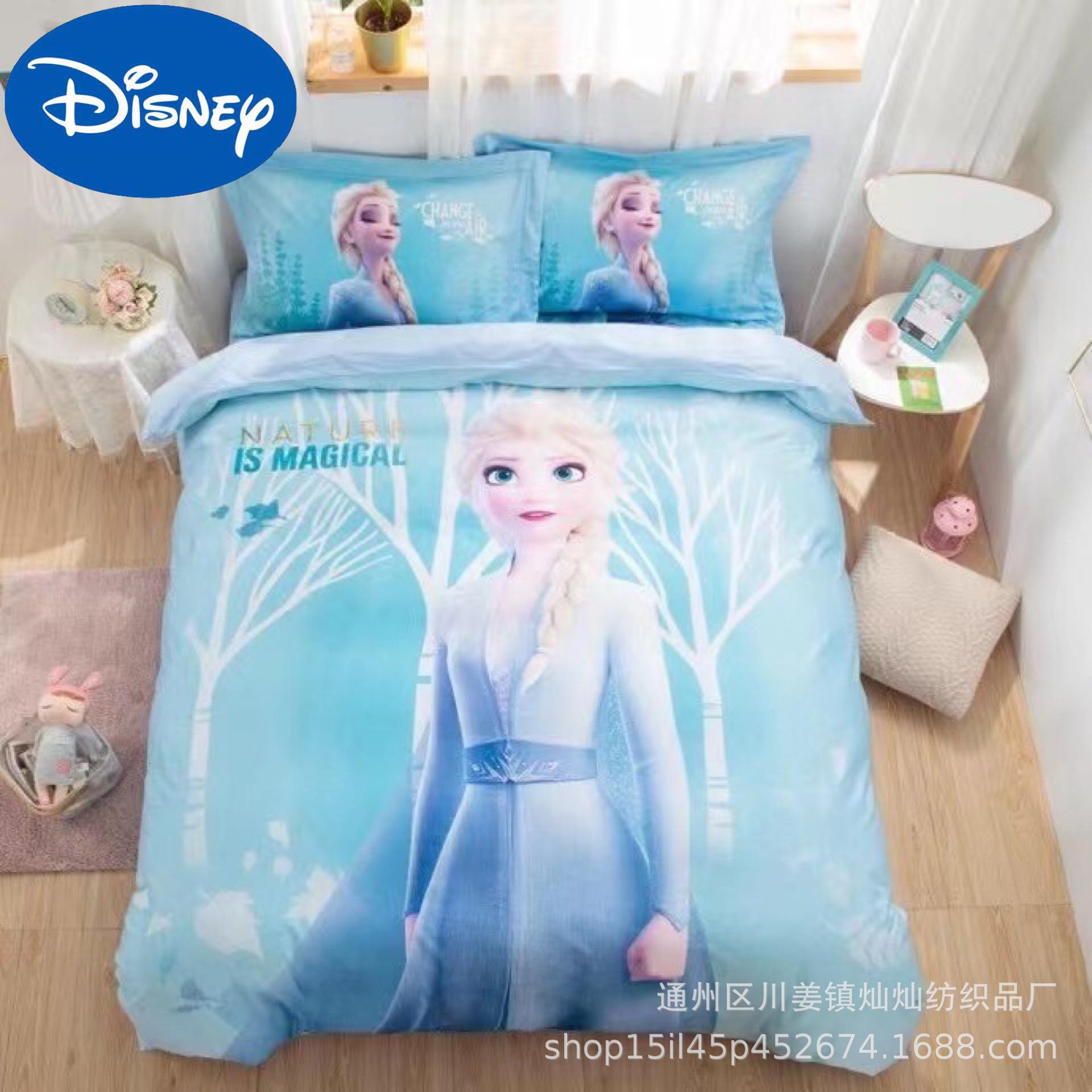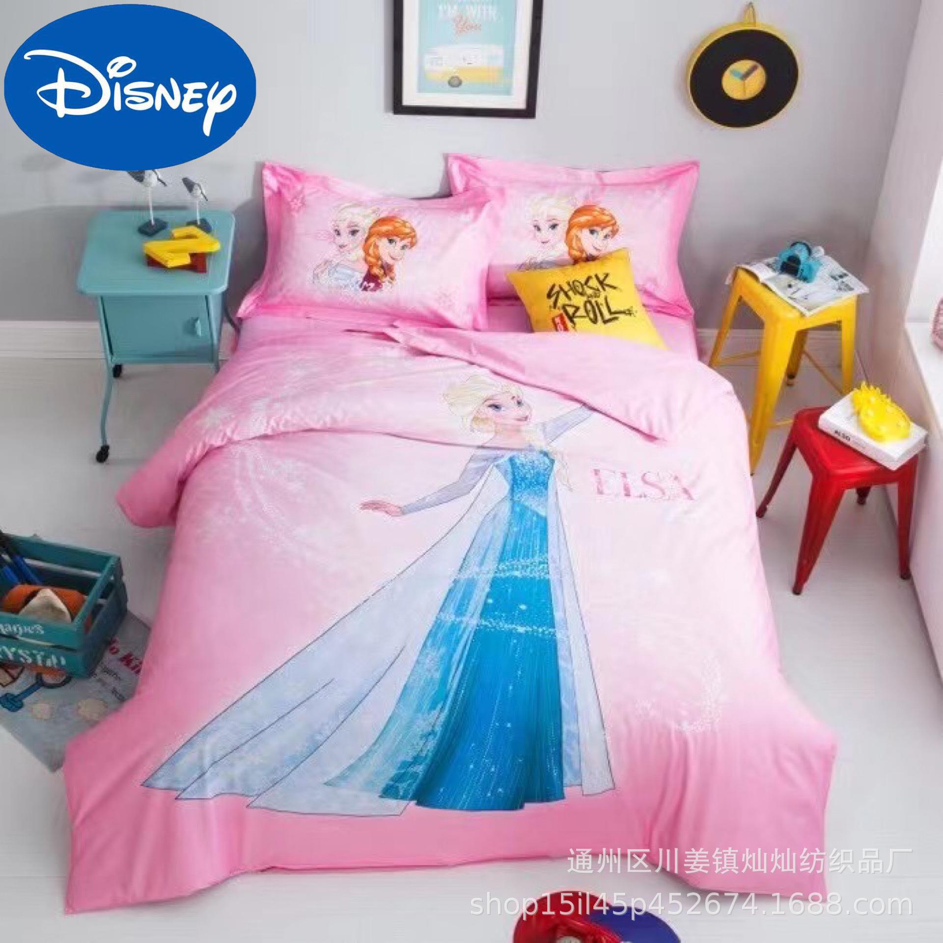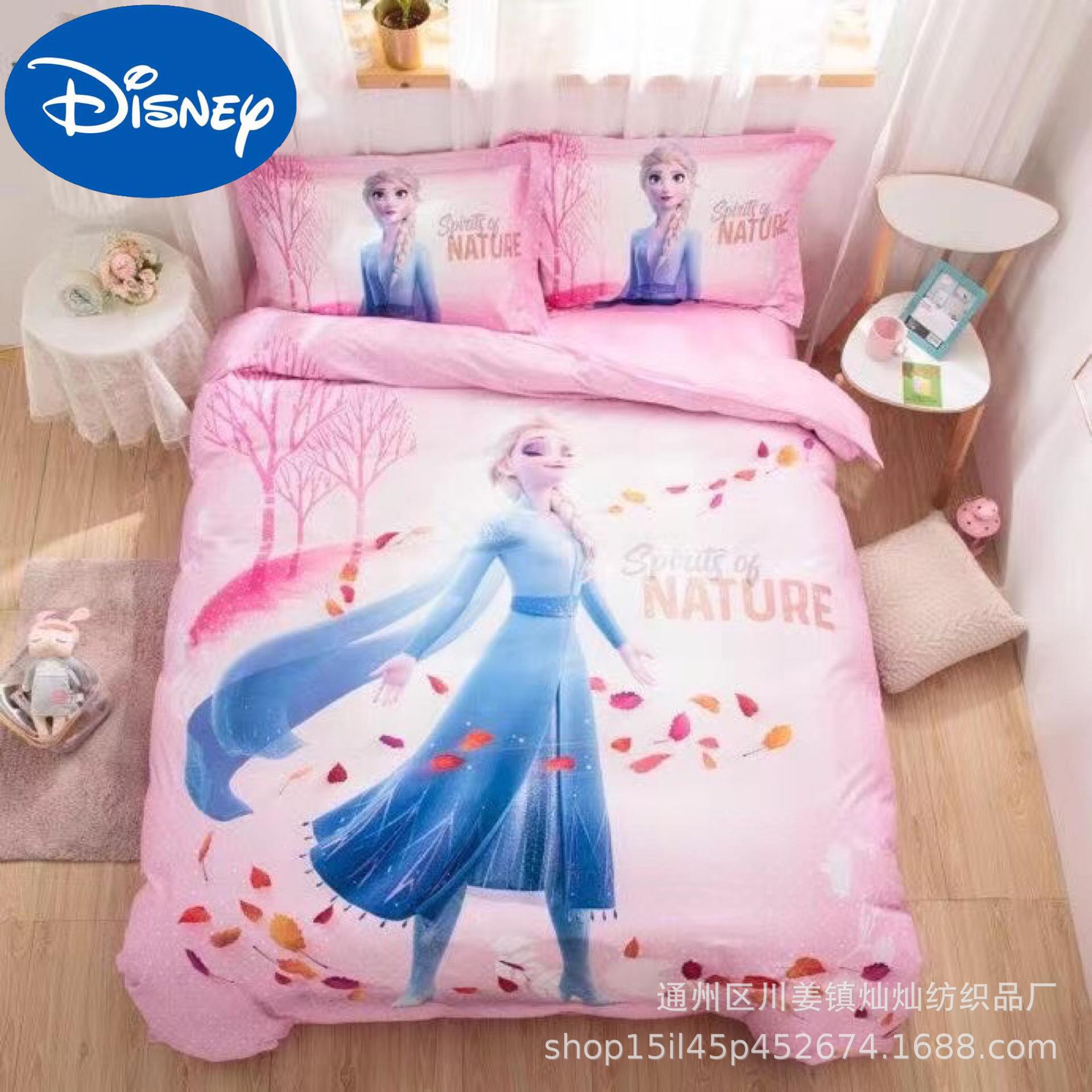 迪士妮尼纯棉四件套白雪公主儿童床单少女心爱莎全棉床上用品1.5m