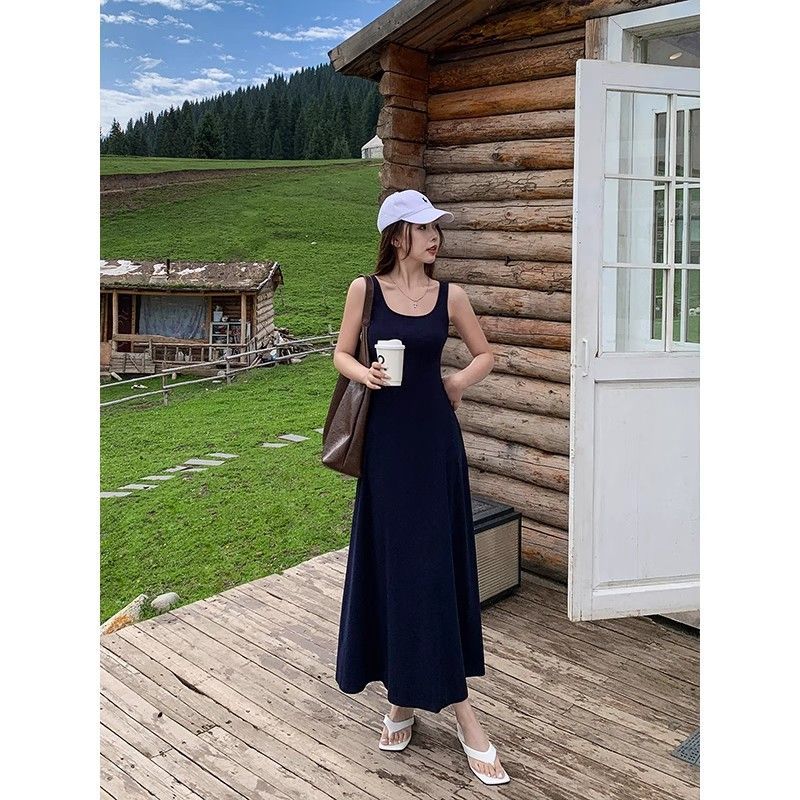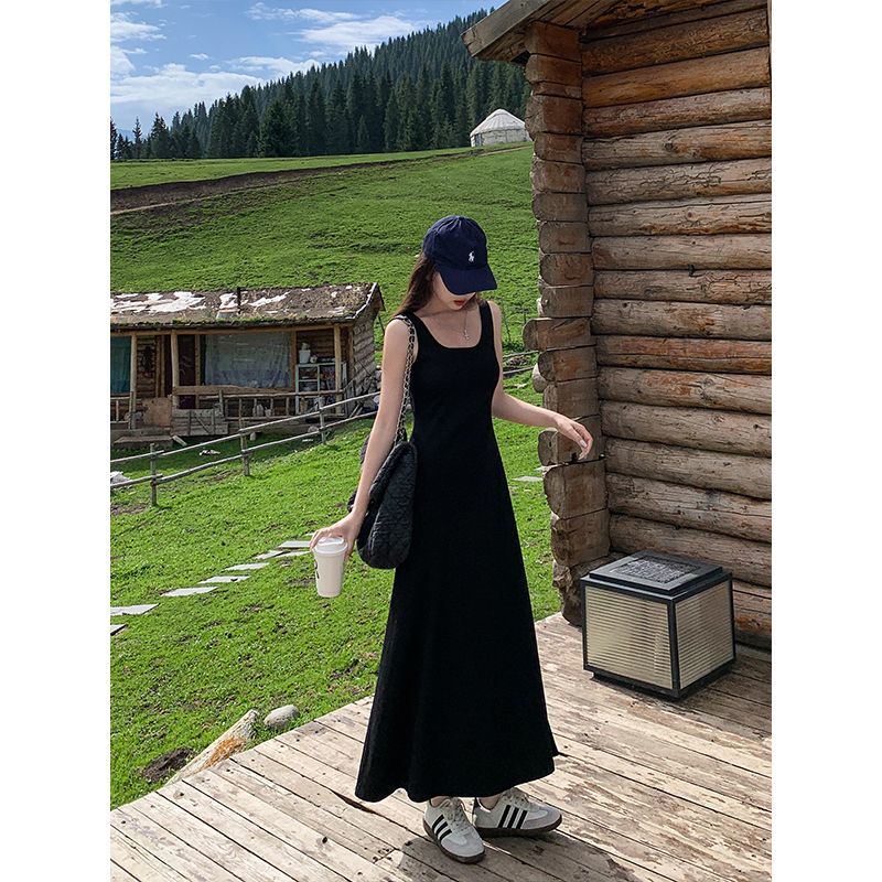 黑色背心连衣裙2024新款女夏内搭无袖a字吊带裙收腰气质长裙