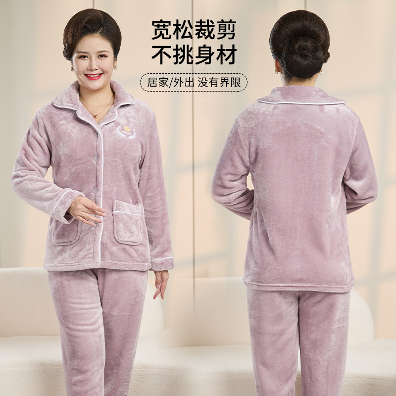 珊瑚绒妈妈睡衣女冬季2025新款加绒加厚中老年秋冬款家居服套装