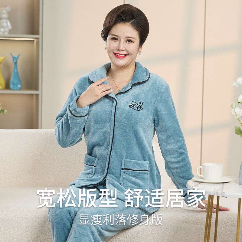 妈妈睡衣女秋冬款珊瑚绒送礼