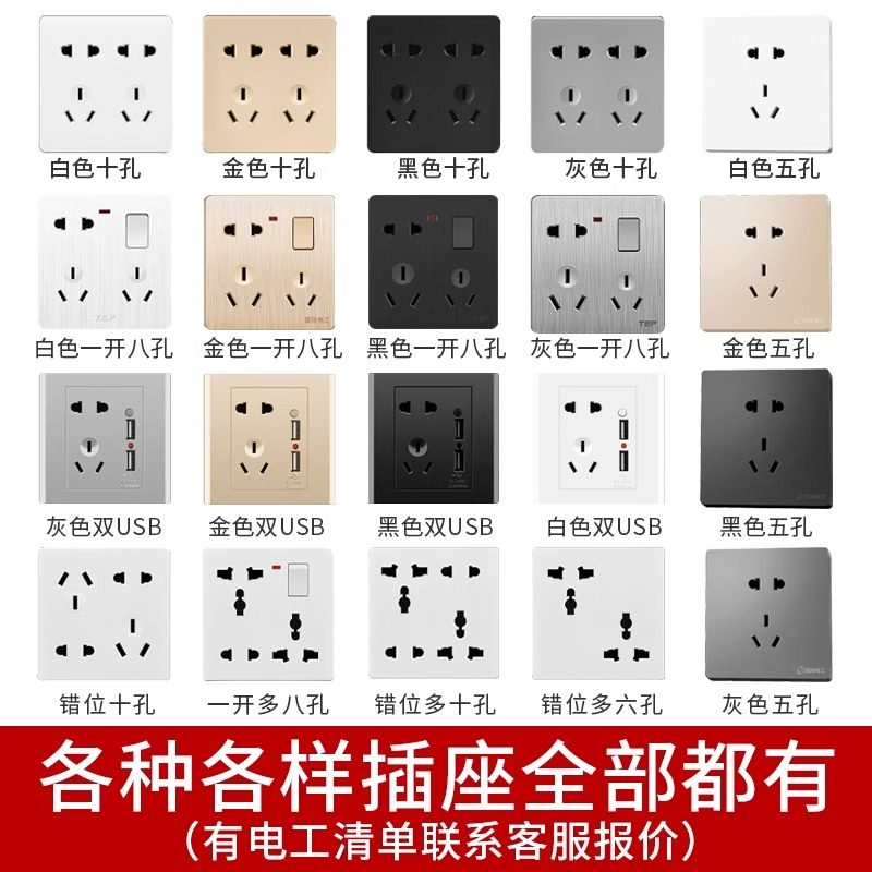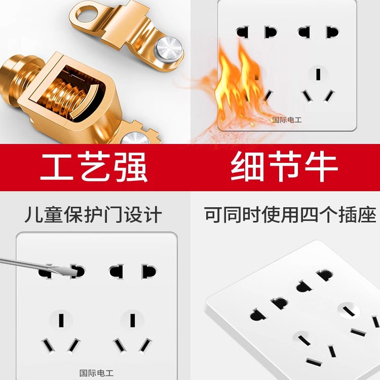 国际电工86型带开关插座面板多孔墙壁暗装电源5五6六7七8八10十孔