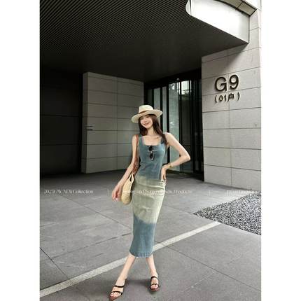 林千入法式复古无袖连衣裙女夏季新款设计感小众修身显瘦时尚长裙