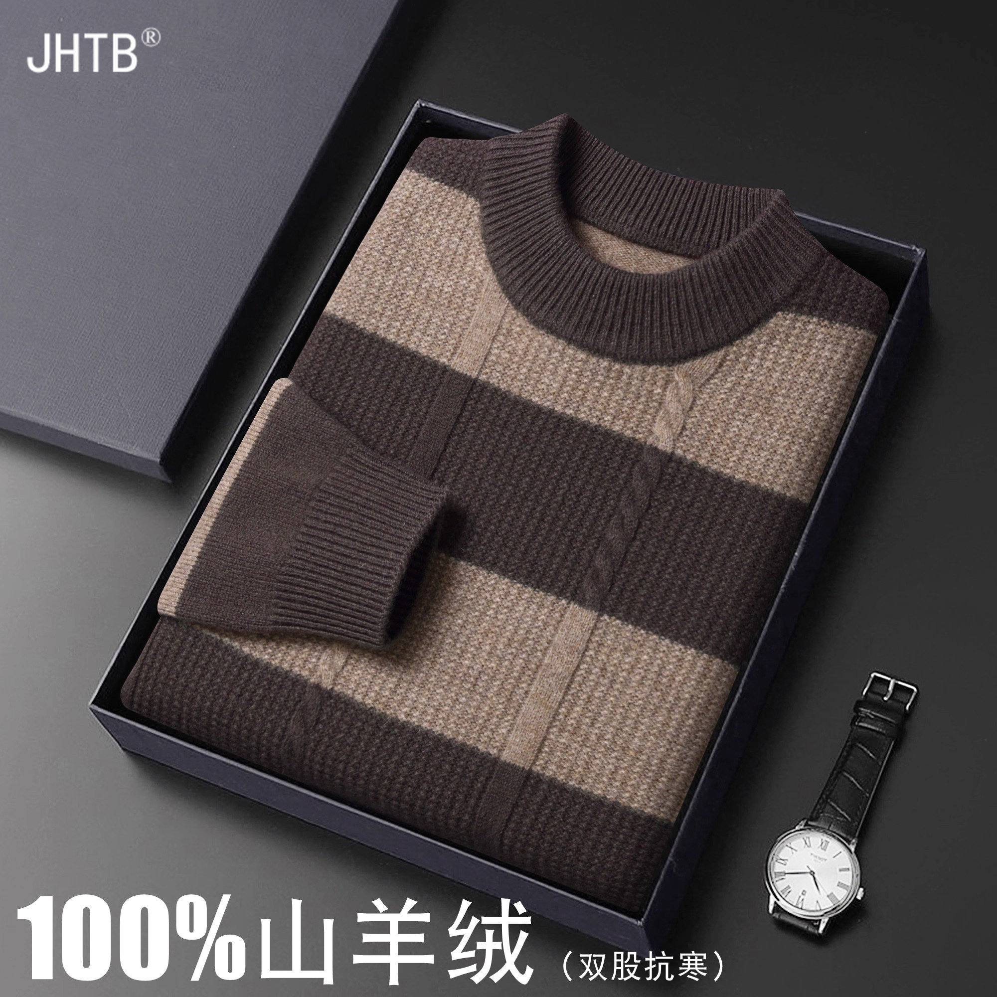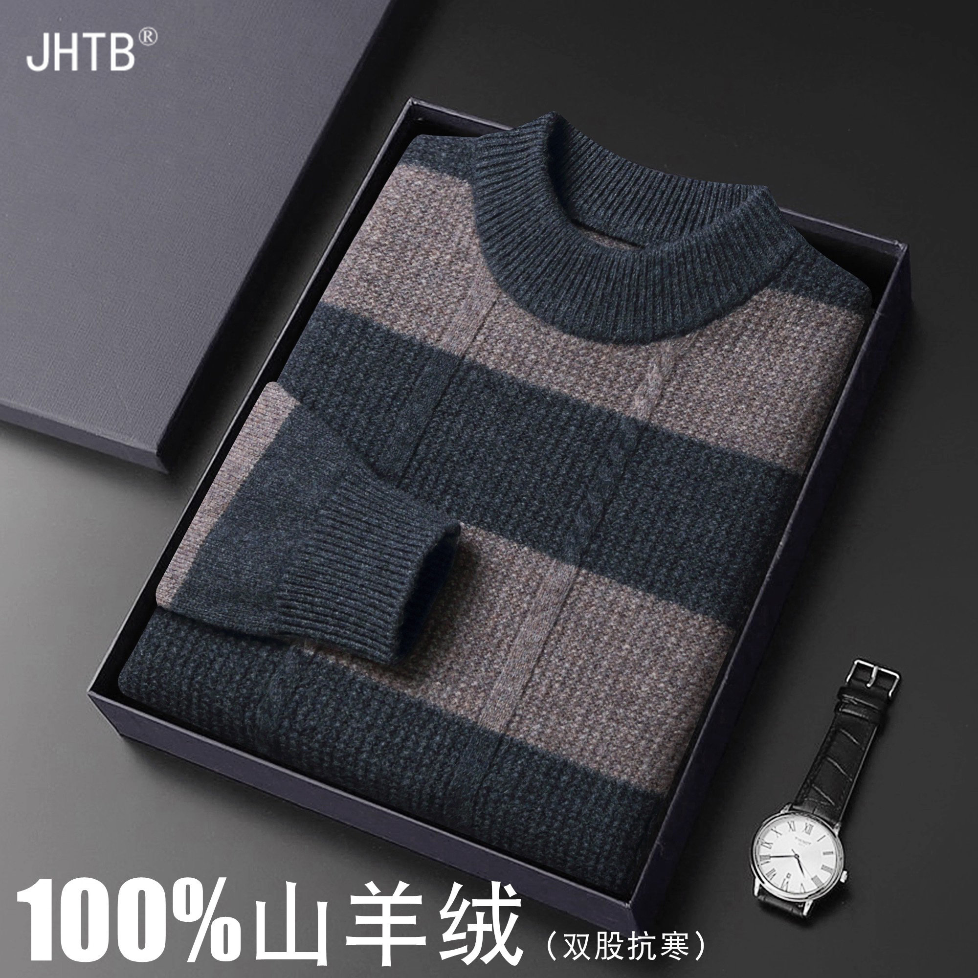 2025新款鄂尔多斯市纯羊绒衫男士100%山羊绒半高领冬季针织羊毛衣