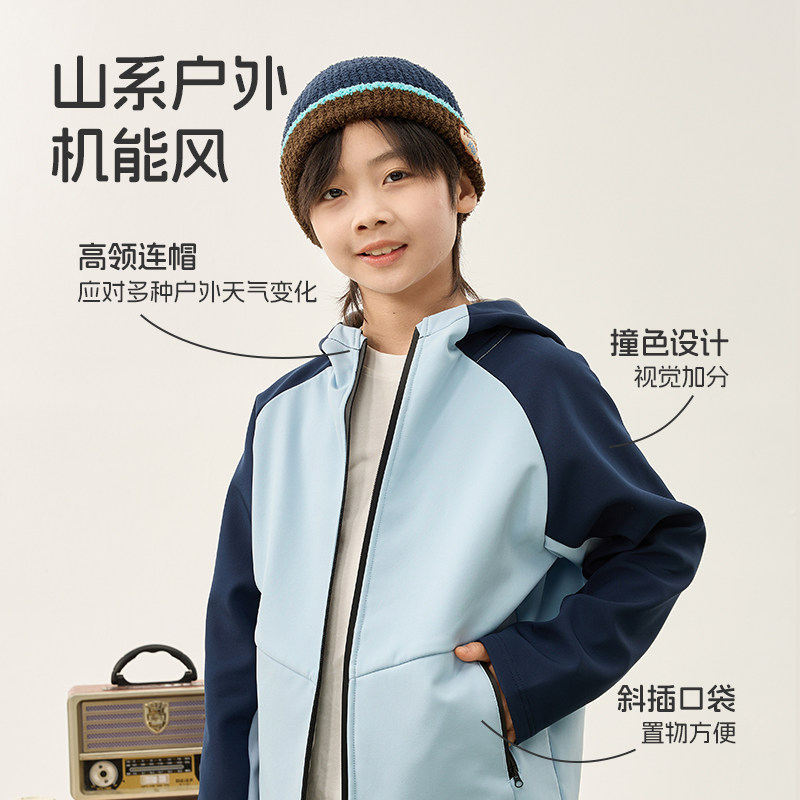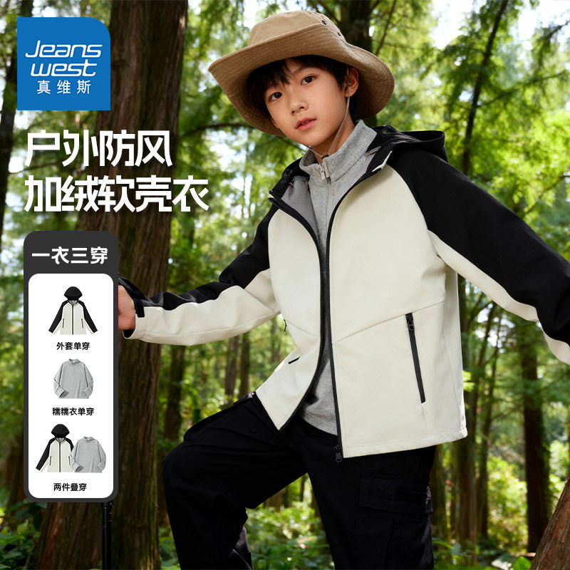 真维斯童装男童加绒外套秋冬款儿童帅气户外防风冲锋衣加厚冬装男