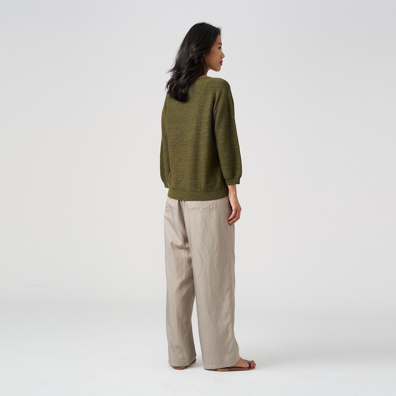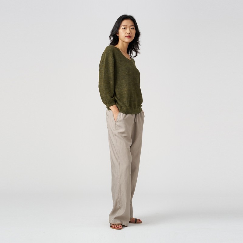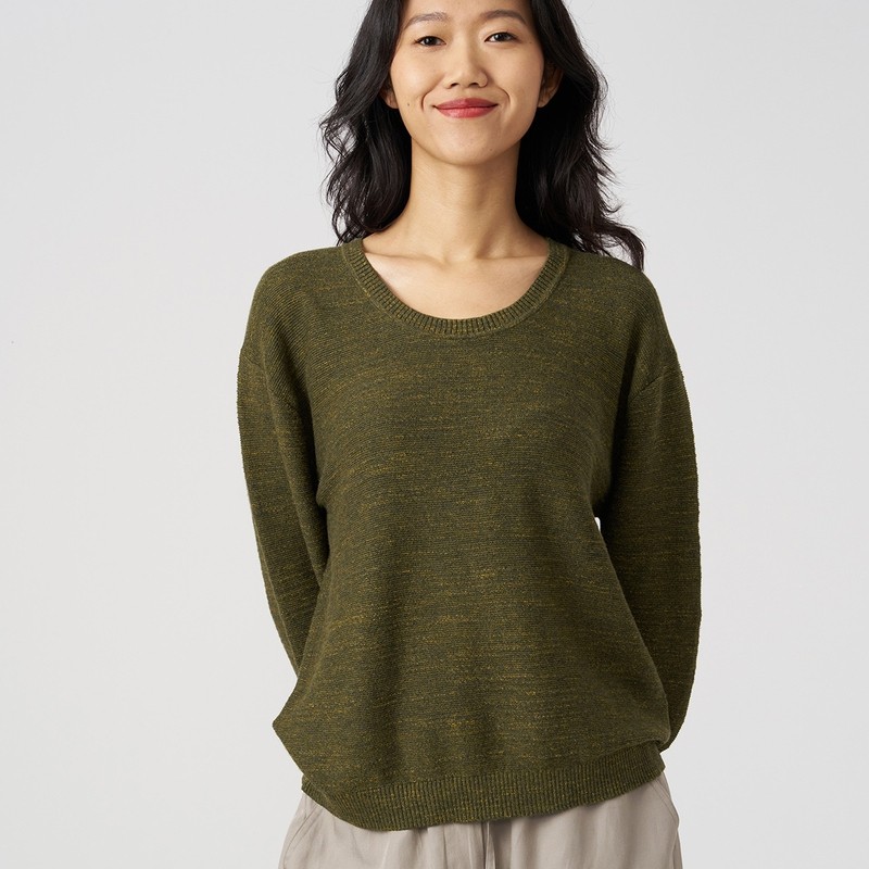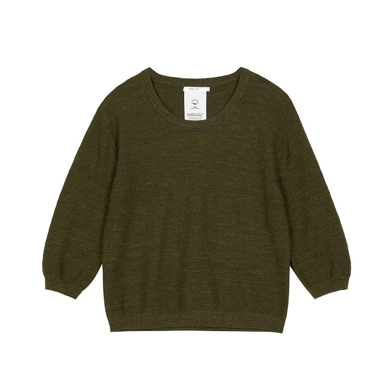 素然klee klee 秋季女士柔软舒适环保棉竹节纱七分袖套头针织衫