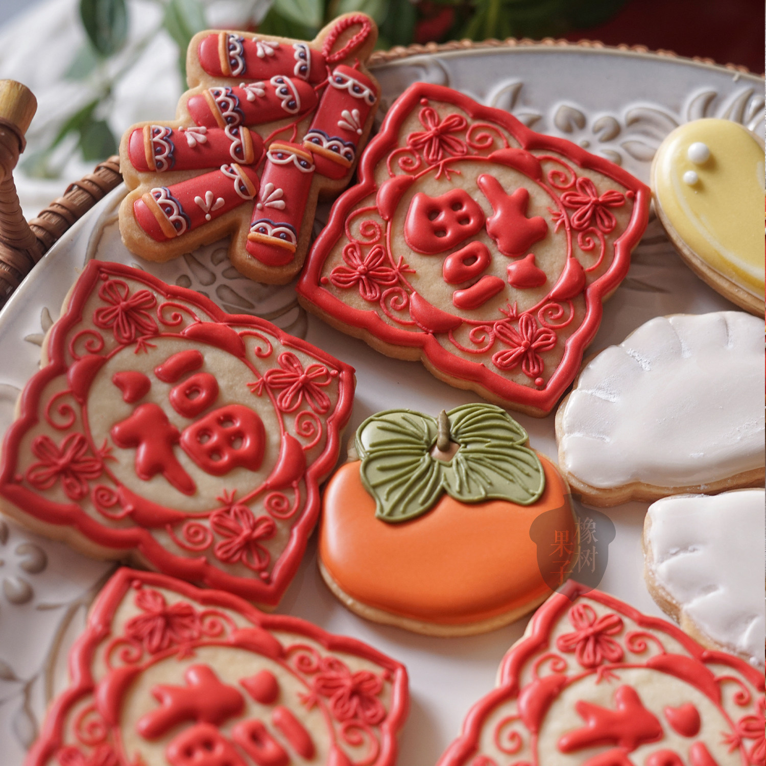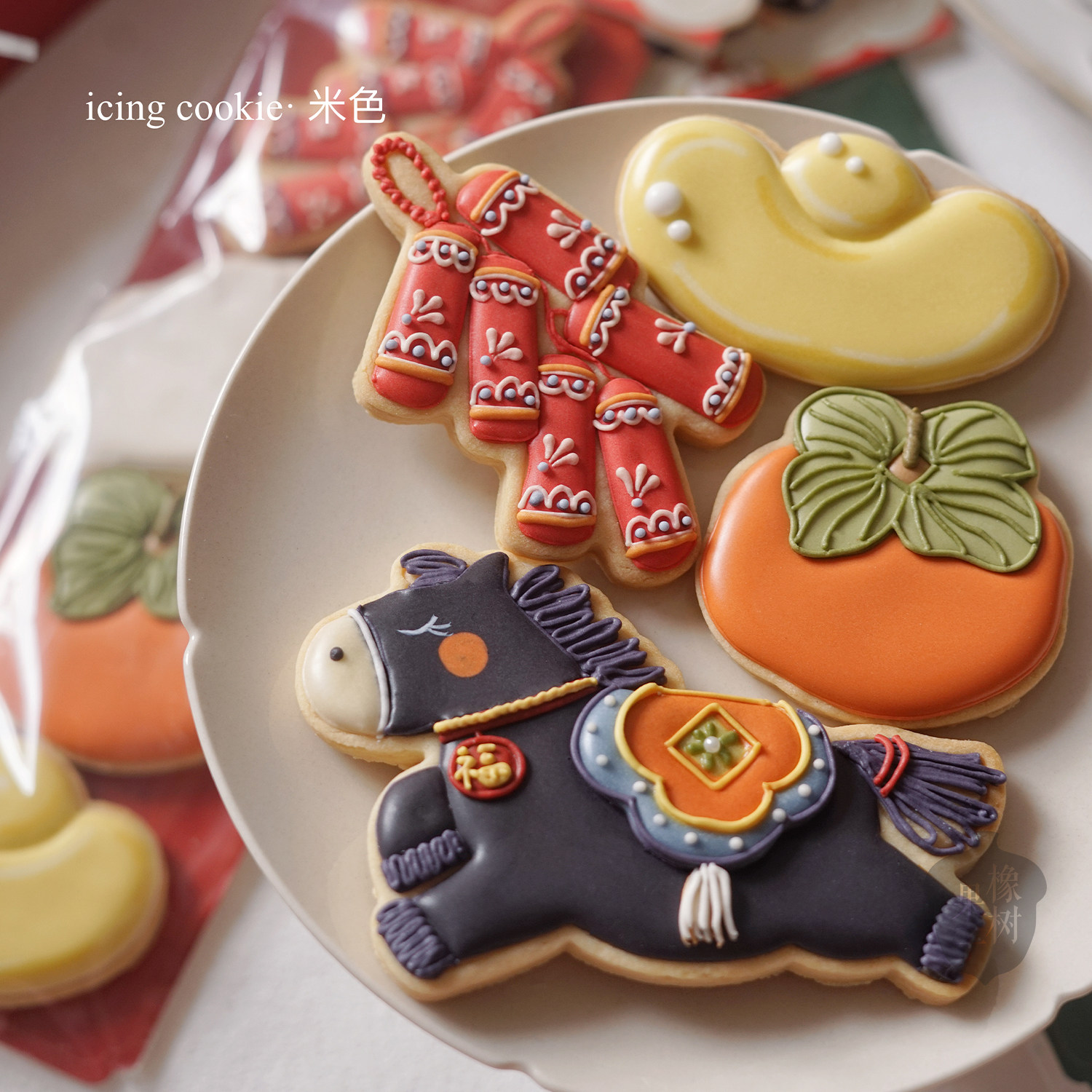 中式马年糖霜饼干模具 国潮黑马糖葫芦翻糖压模 元宝柿子石塑工具