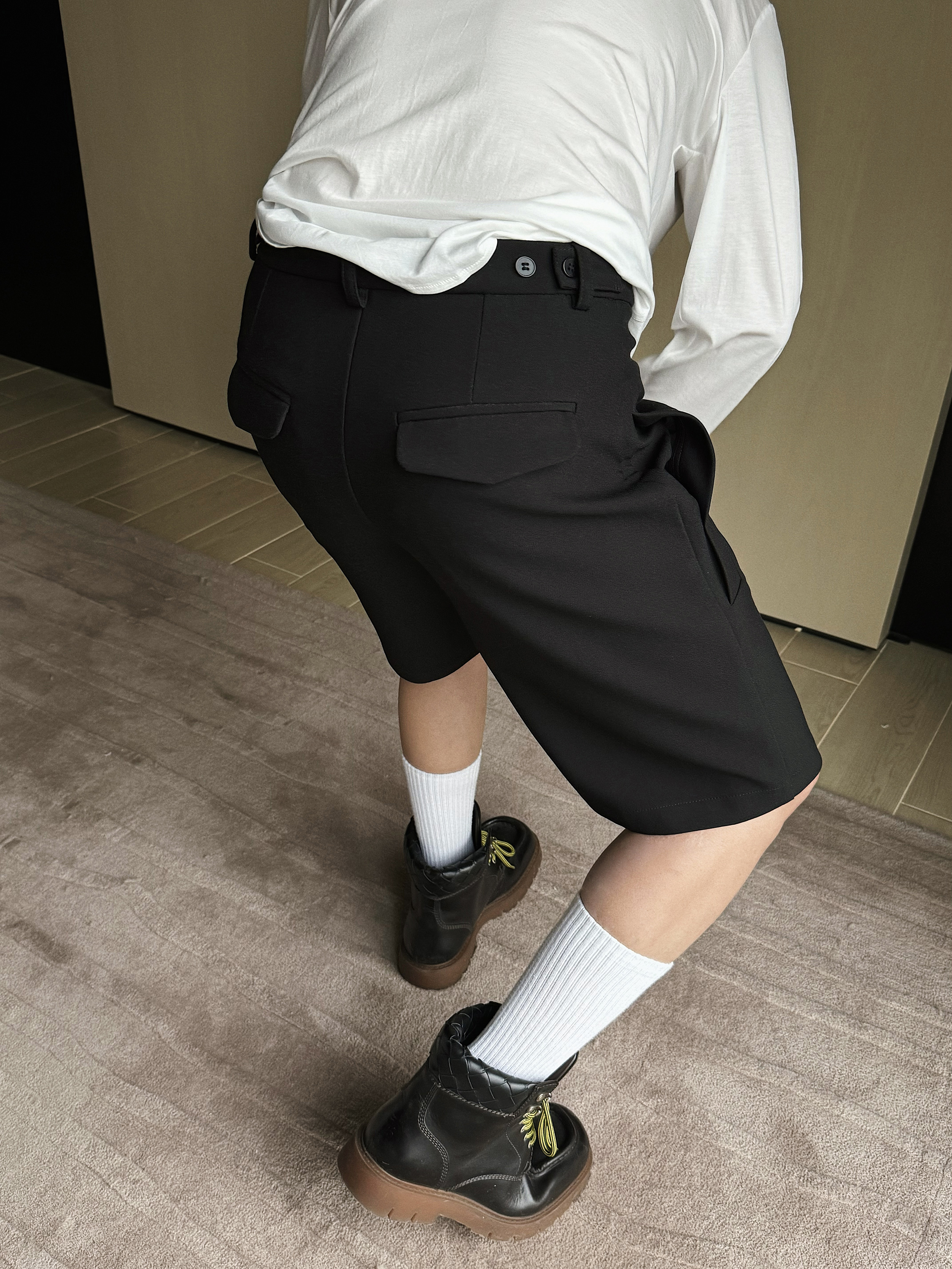 weave 时装廓形感的黑色空气层西装短裤 宽松直筒五分休闲百搭男