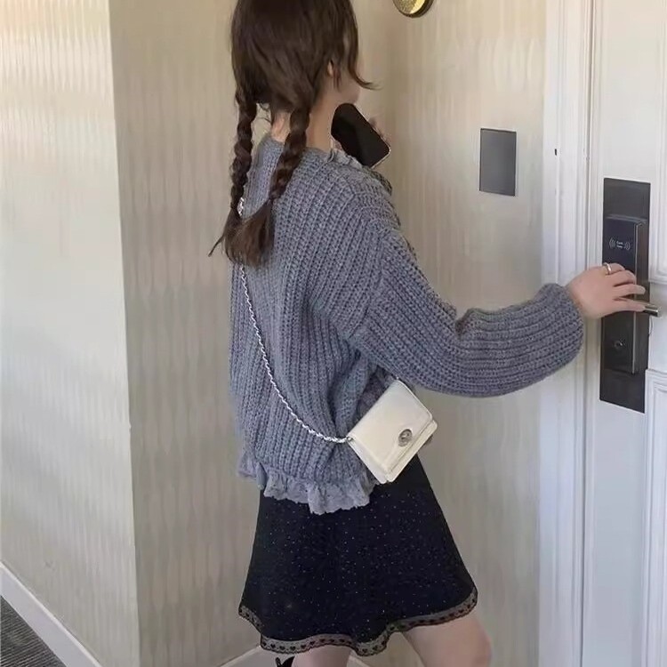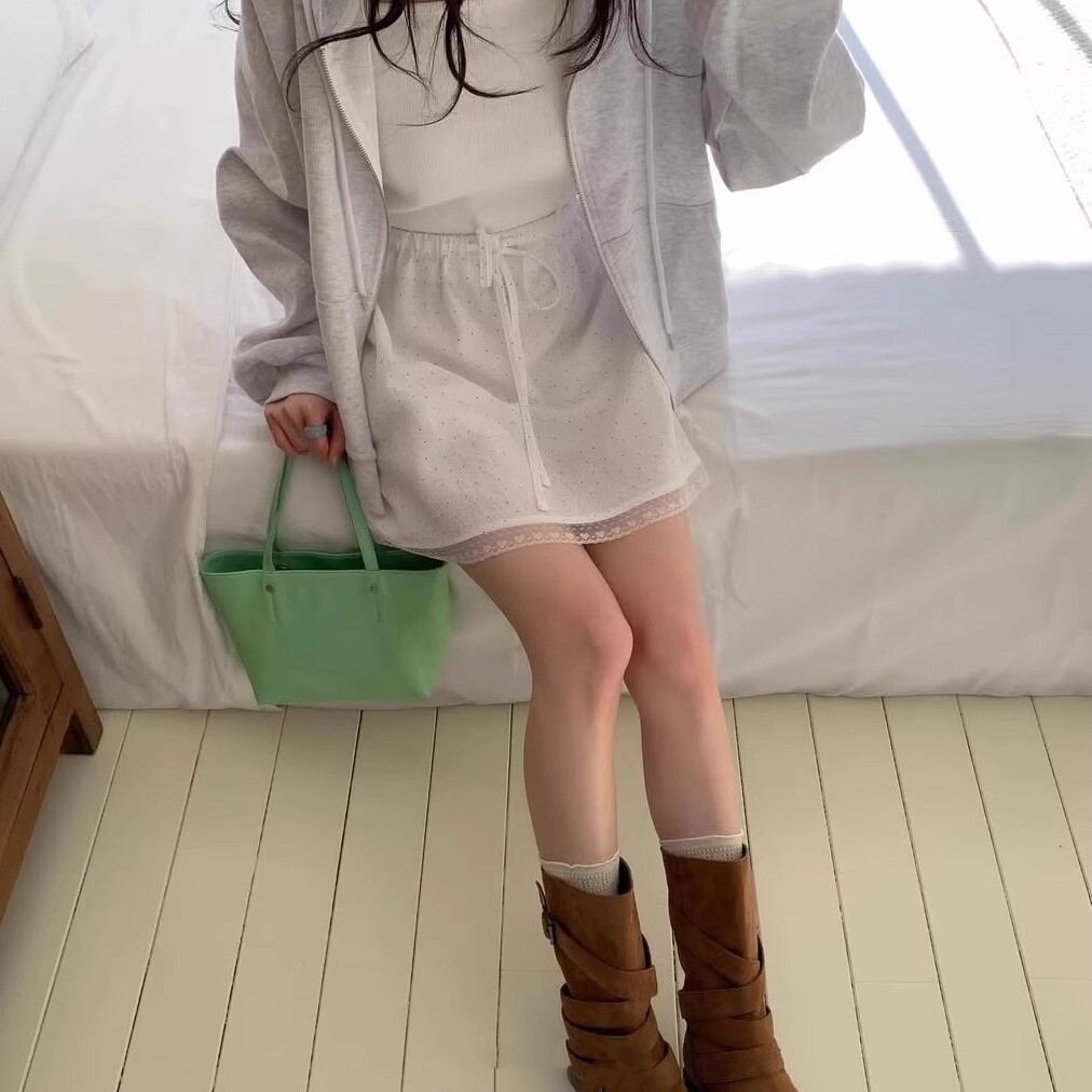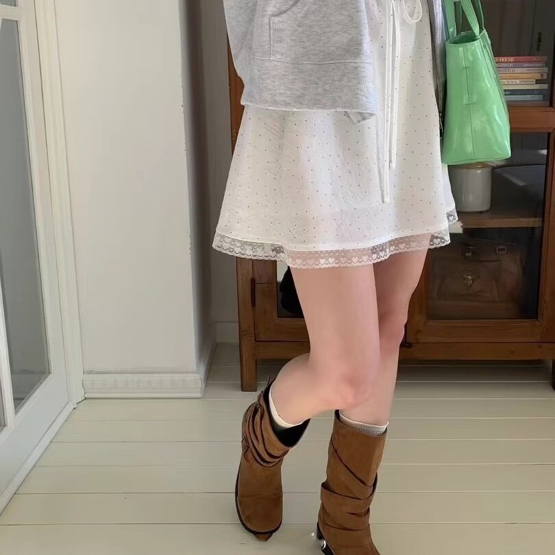 Exclusive type 韩国小众设计蕾丝边小波点高腰抽绳系带半身短裙