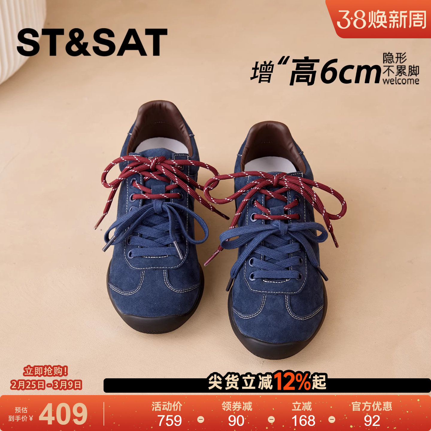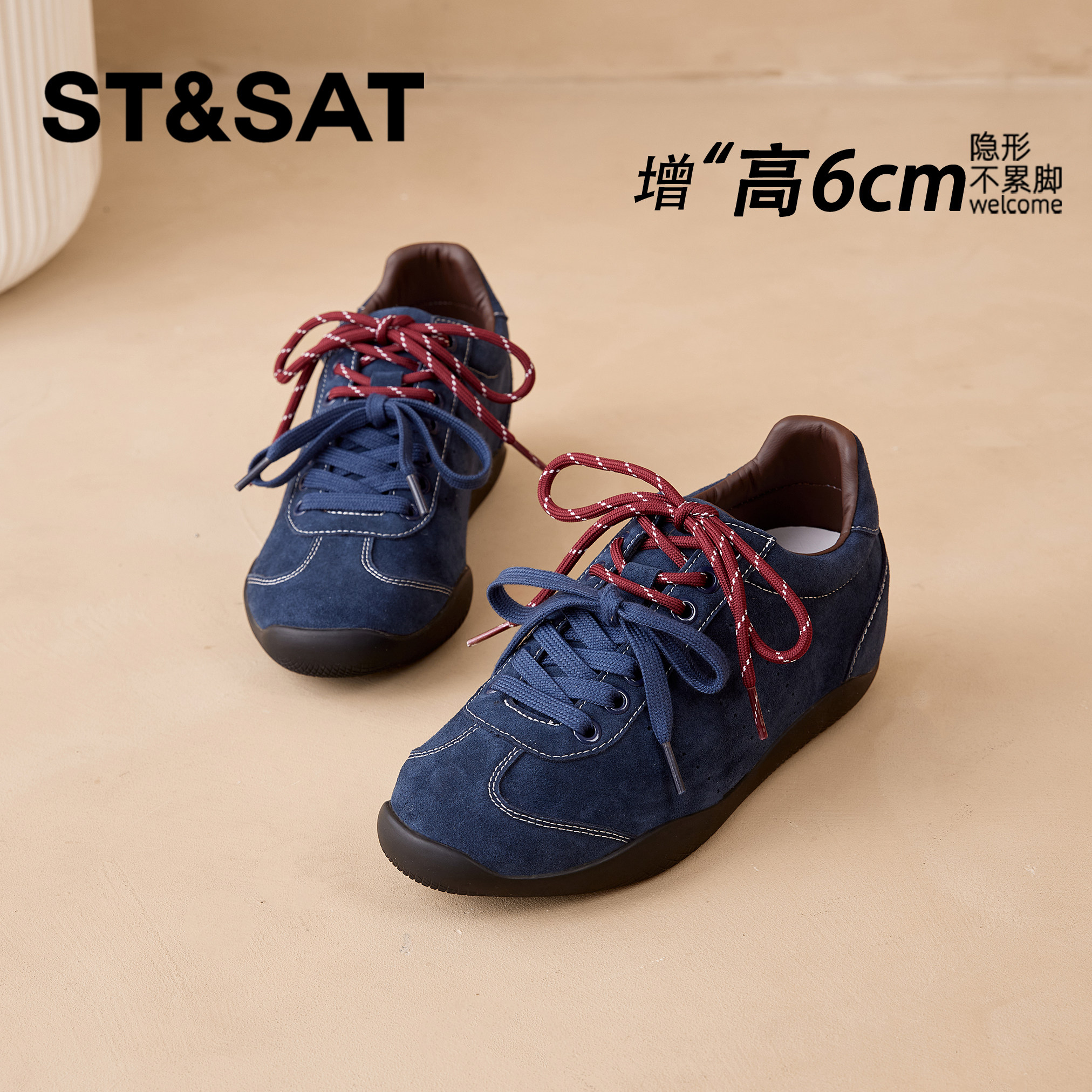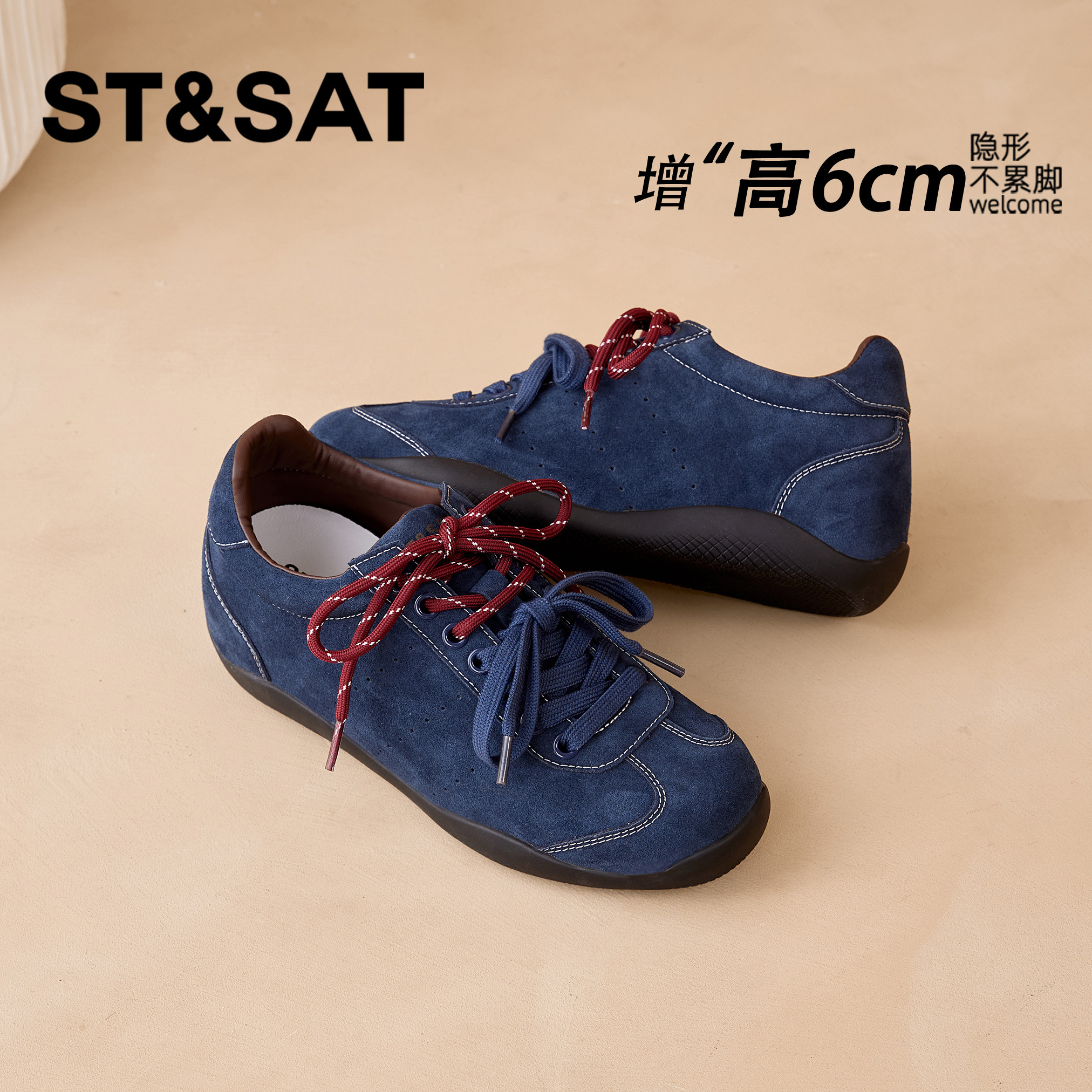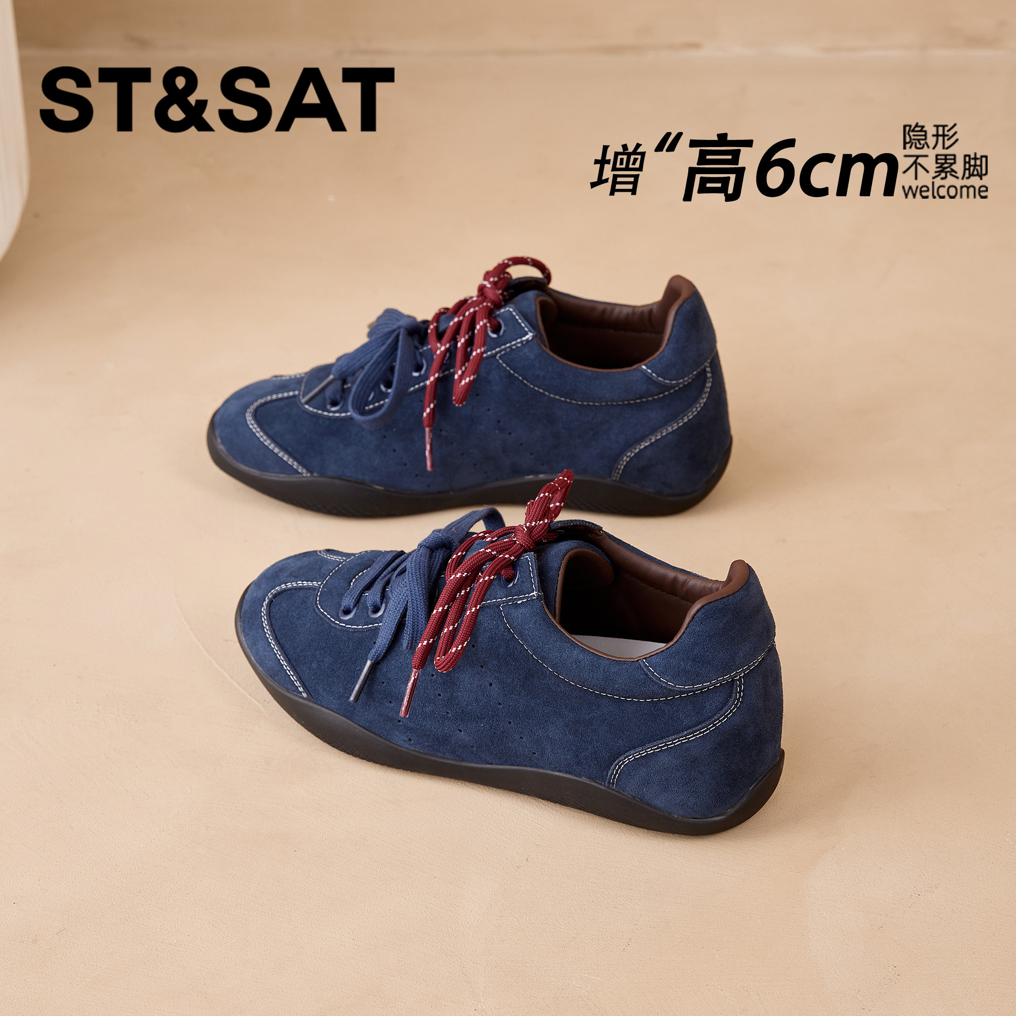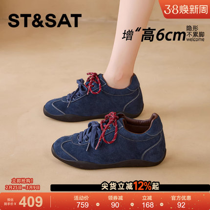 星期六6CM巨好看德训鞋女2025新款厚底休闲百搭运动内增高女鞋子
