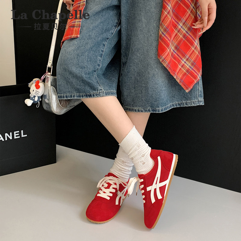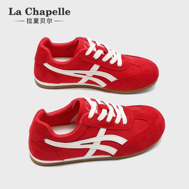 拉夏贝尔红色内增高德训鞋女2025秋冬新款爆款小白鞋运动休闲板鞋