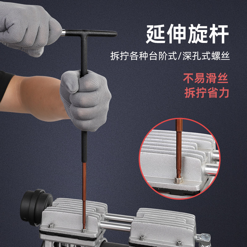 加长320MM内六角T型大扭矩丁字形六方六棱加硬扳手包胶手柄可加力