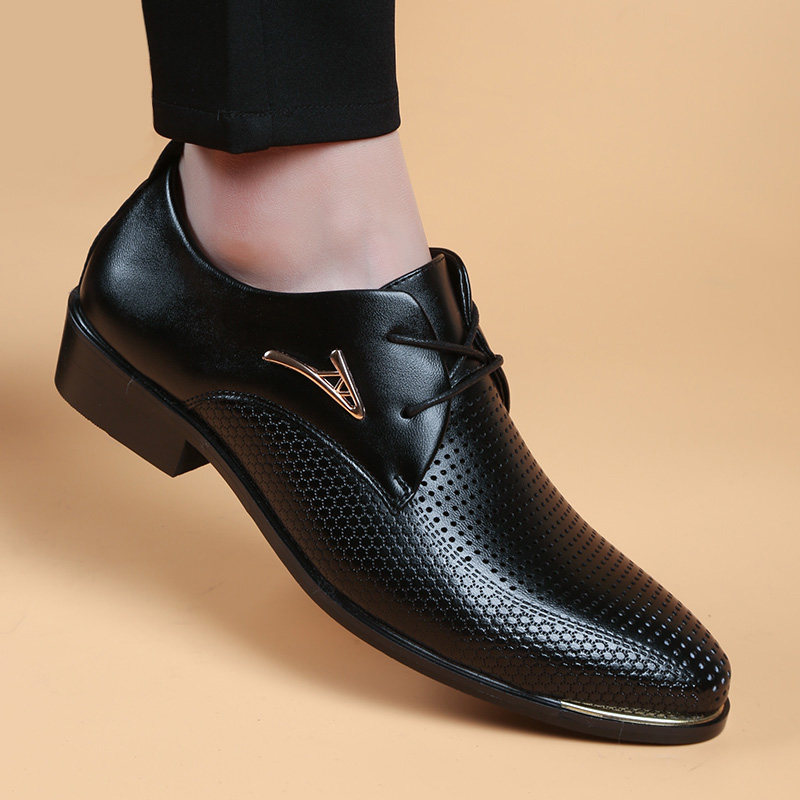 商务正装皮鞋男真皮韩版尖头内增高鞋秋冬青年潮英伦黑色休闲皮鞋