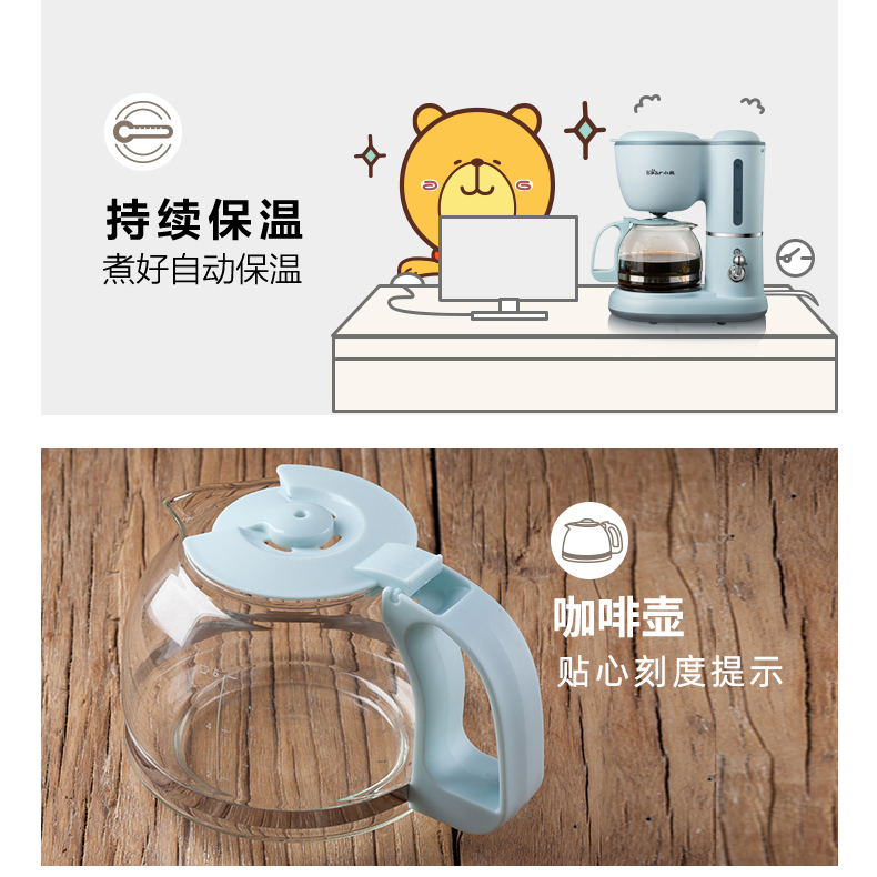 小熊咖啡机家用美式滴漏式泡茶咖啡壶两用小型全自动办公室一体机