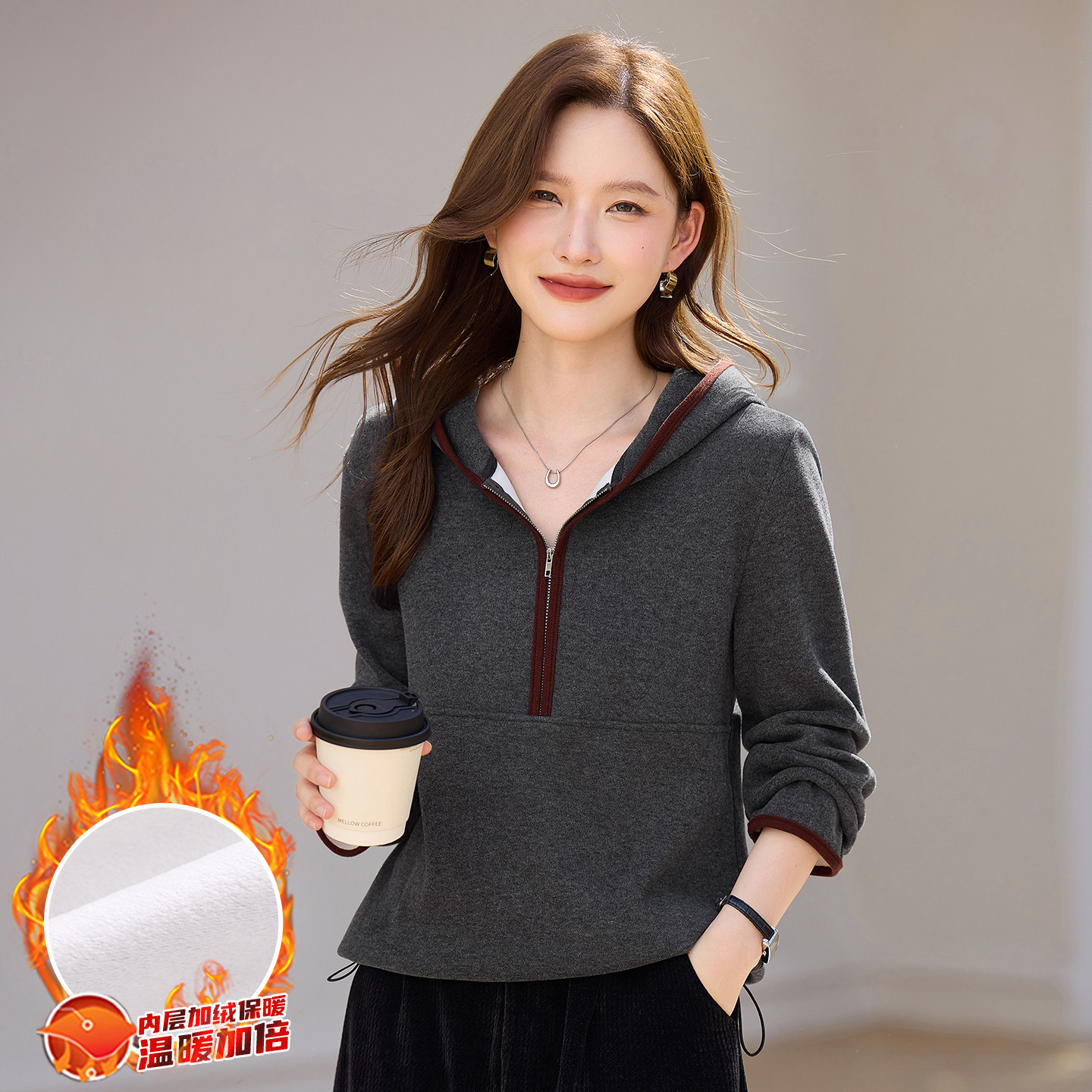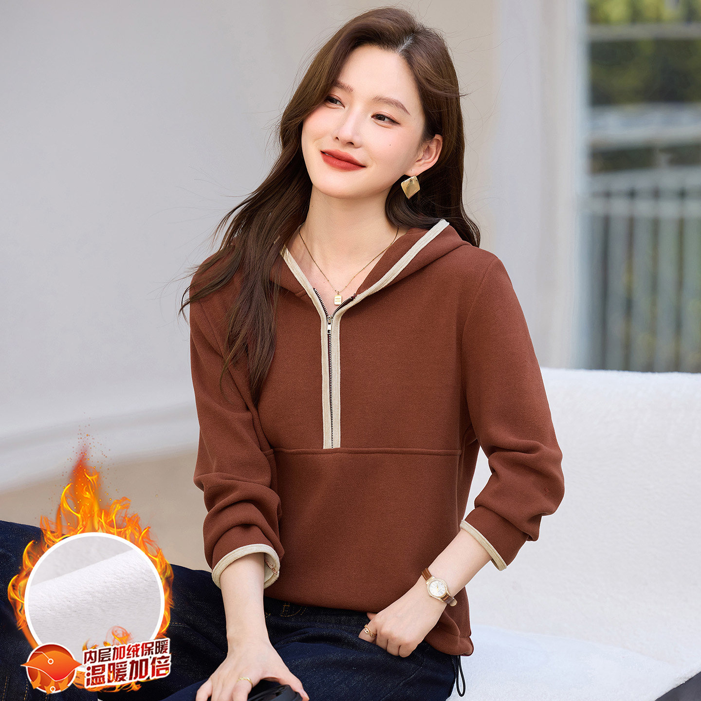 秋冬加绒加厚卫衣女2025年新款时尚洋气宽松连帽套头爆款上衣外套