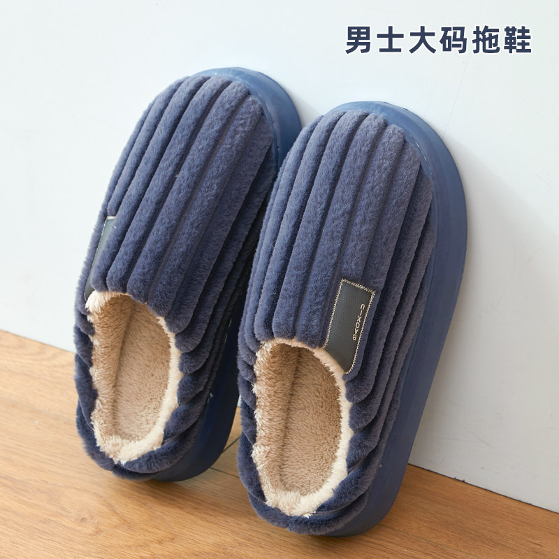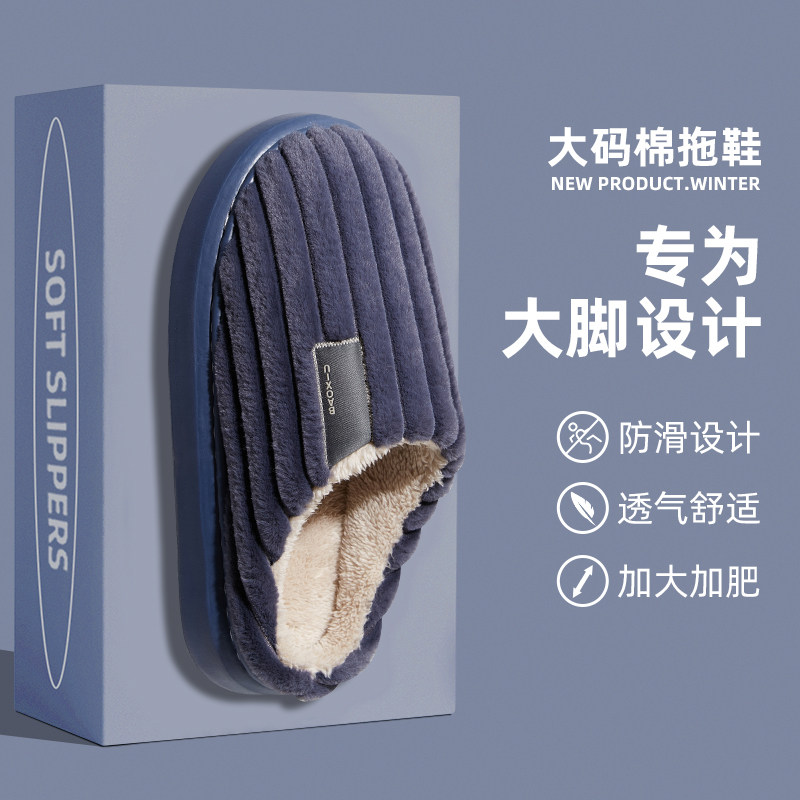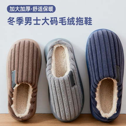 大码棉拖鞋男士冬季4647室内居家加宽加厚毛绒保暖防滑棉拖男冬天