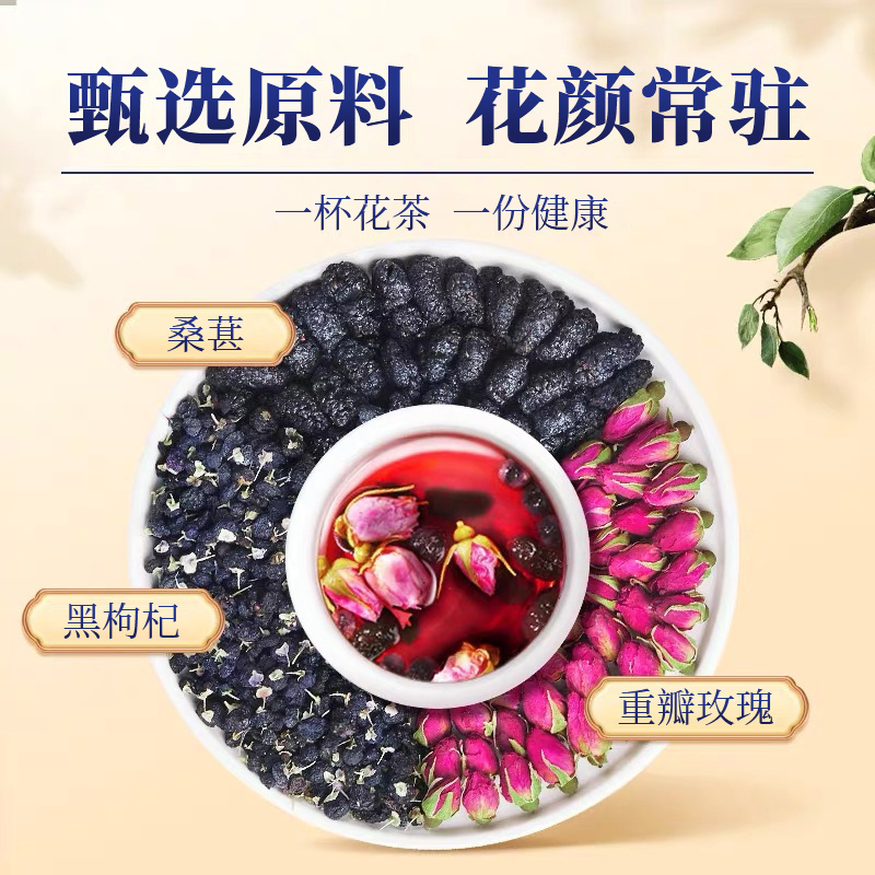 黑枸杞桑葚干玫瑰花茶包组合茶包