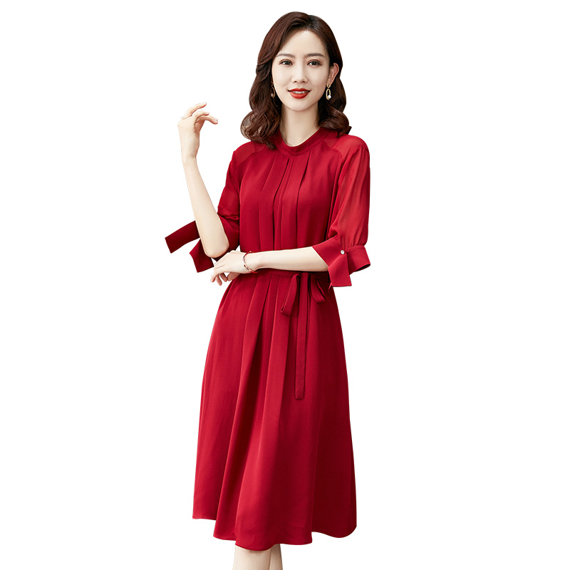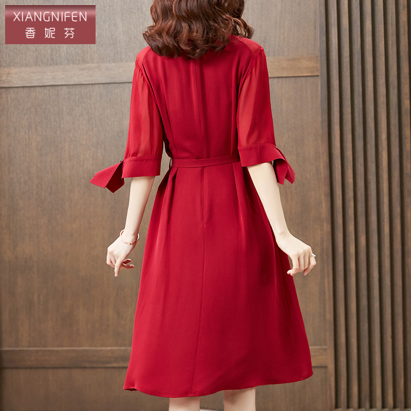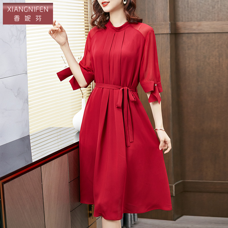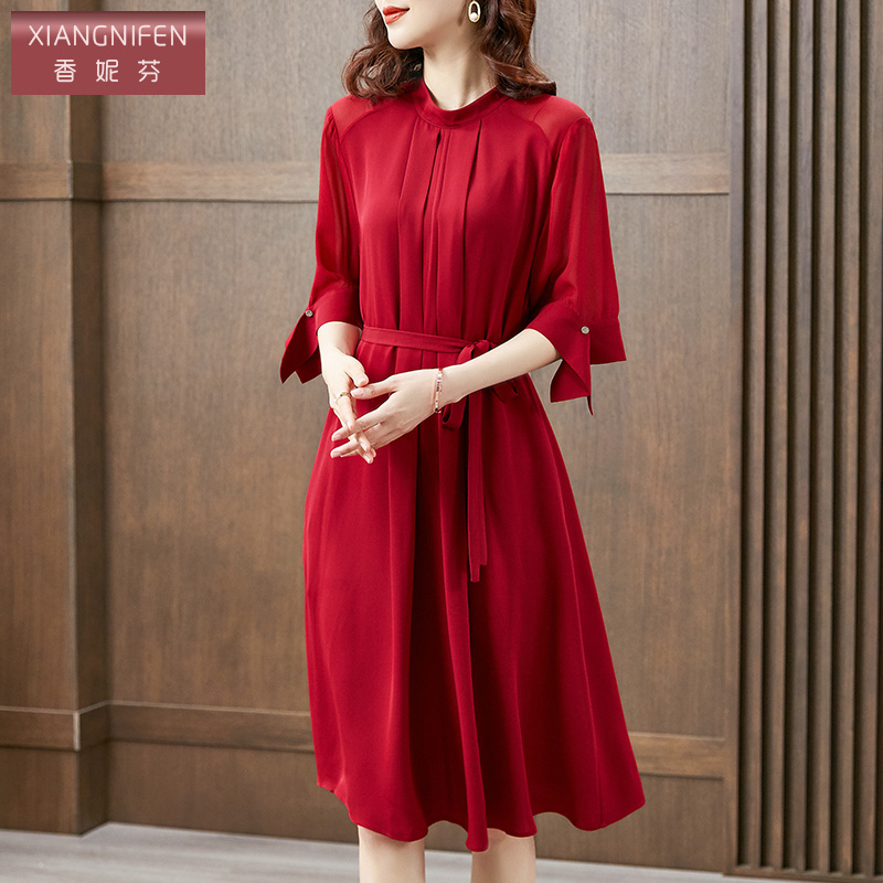 香妮芬红色高端精致重磅真丝阔太太贵妇人连衣裙2025新款夏季气质