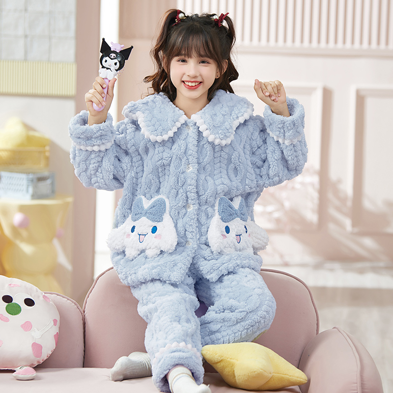 加厚女童睡衣法兰绒秋冬季