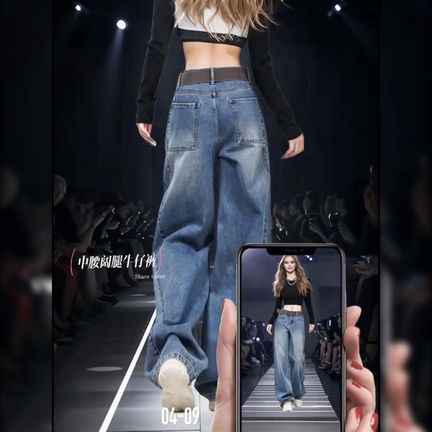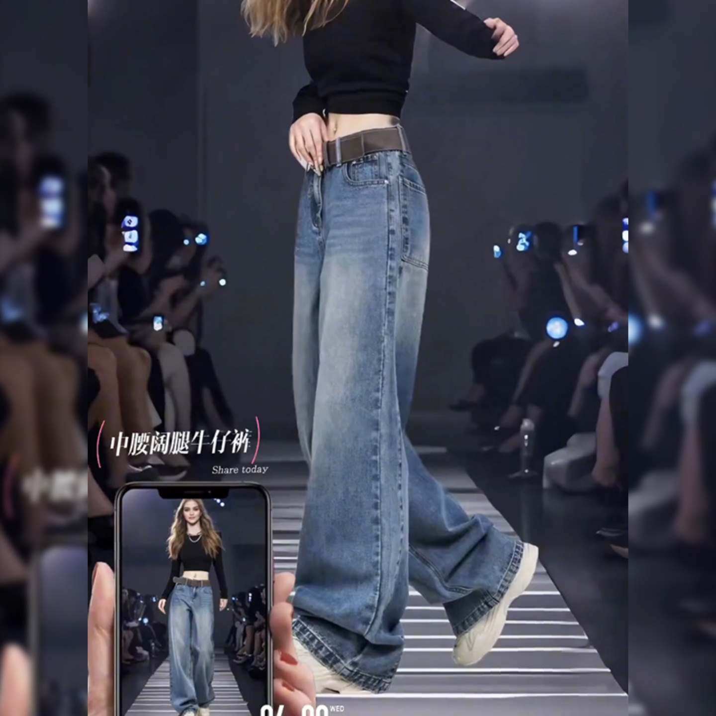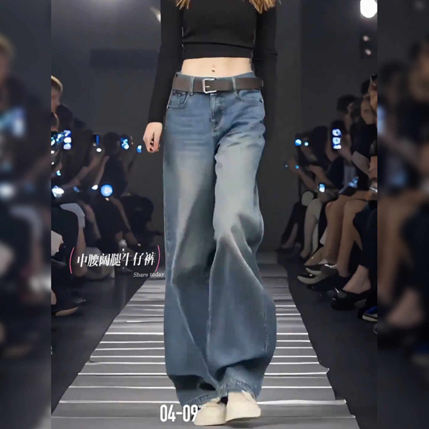 欧货牛仔裤女2025秋季新款大码胖mm宽松显瘦小个子直筒窄版阔腿裤