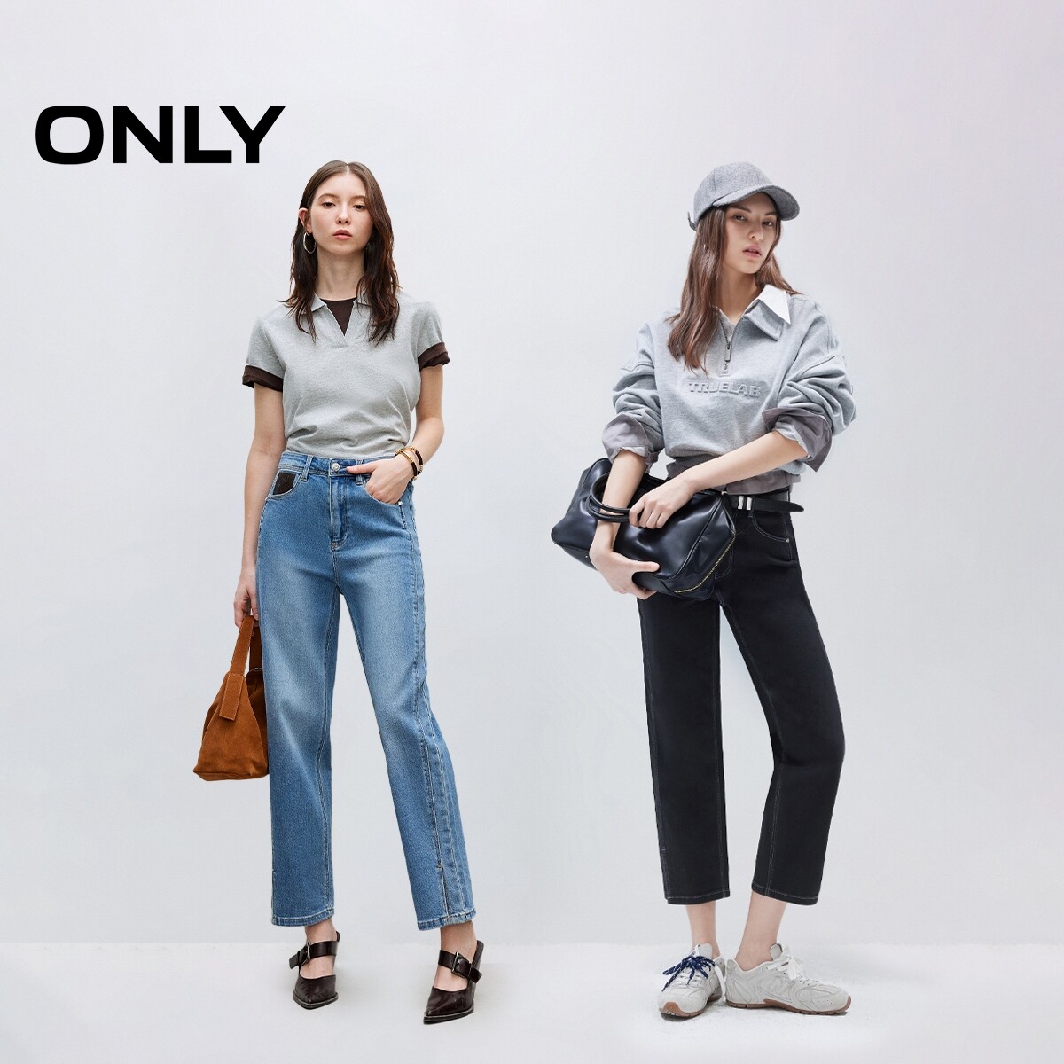 绫致ONLY2025秋冬新款莱卡面料高腰烟管裤直筒九分牛仔裤女