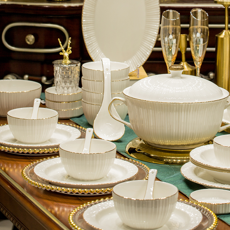 碗碟套装家用2025新款景德镇陶瓷高档釉下彩骨瓷餐具高级感乔迁温