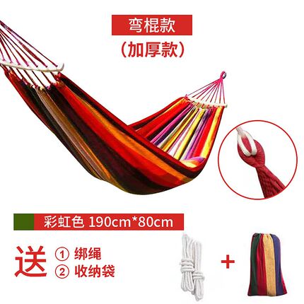 富华帆布彩虹款吊床防侧翻单双人秋千 户外吊床野营带弯棍鸭