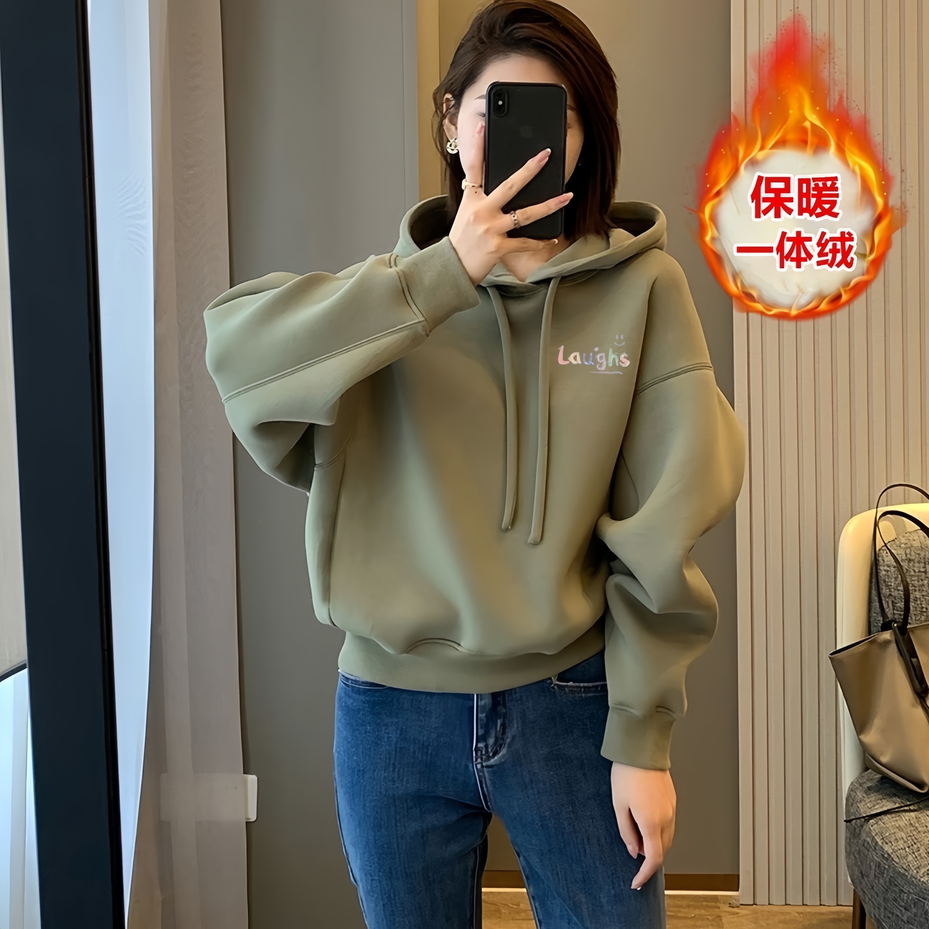 山东即墨高品质薄款连帽卫衣女宽松慵懒风设计感加绒加厚上衣外套