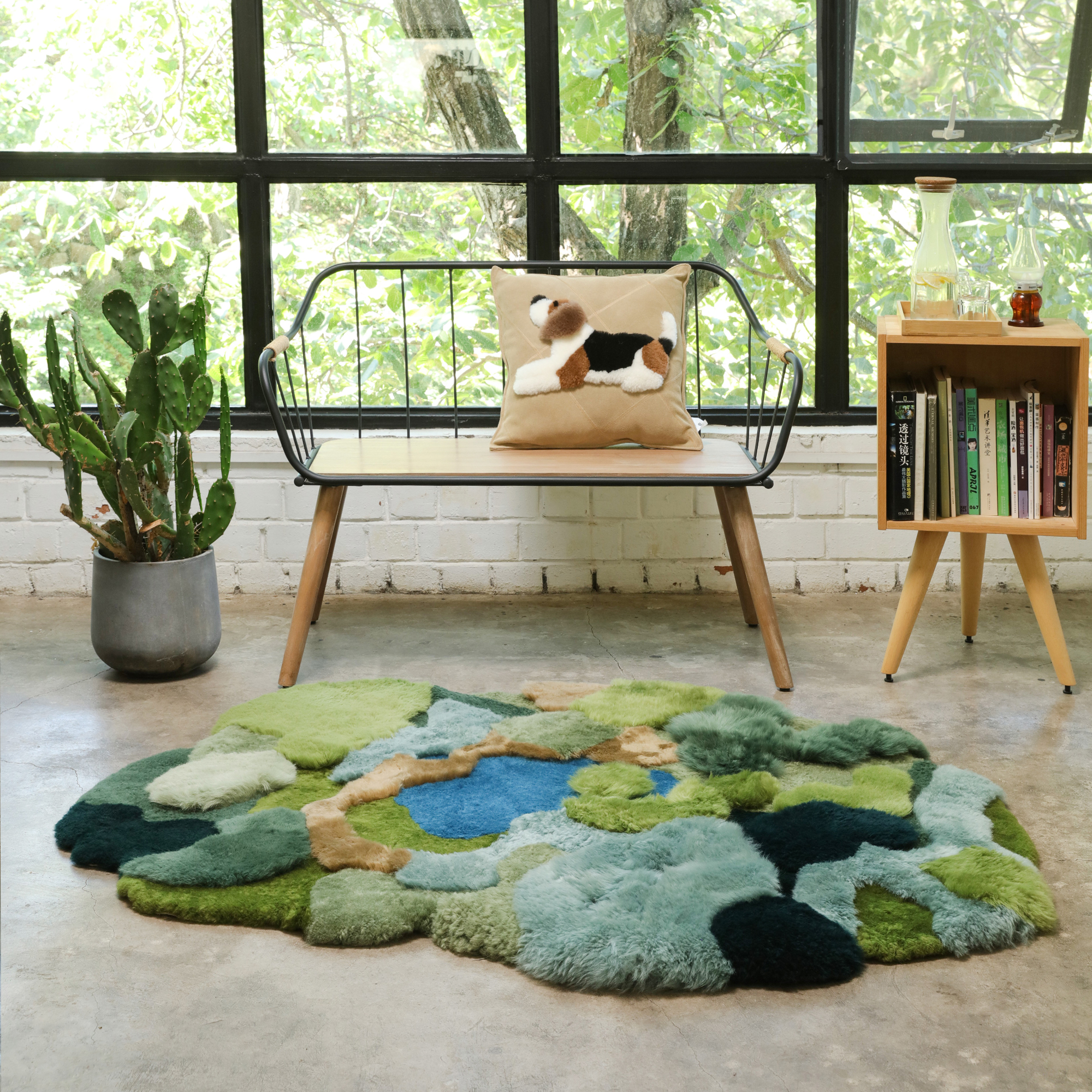 羊毛艺术森林苔藓装饰异形地毯客厅绿色设计师创意绿草坪毯床边毯