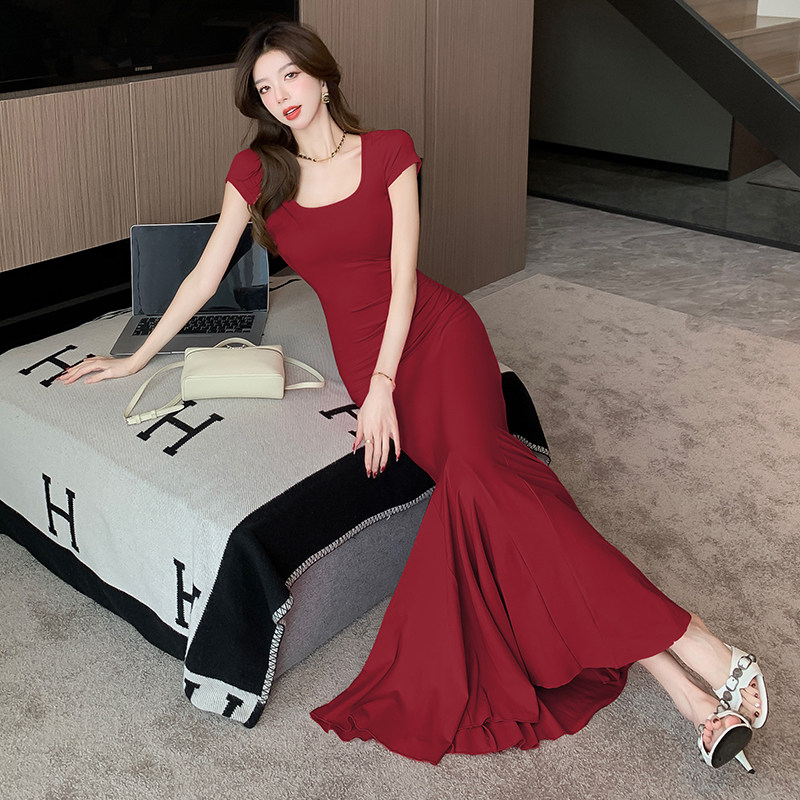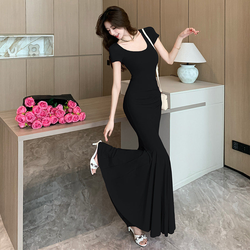 女装春季150cm显高加小码XXXS小个子纯欲风短袖包臀鱼尾连衣裙女