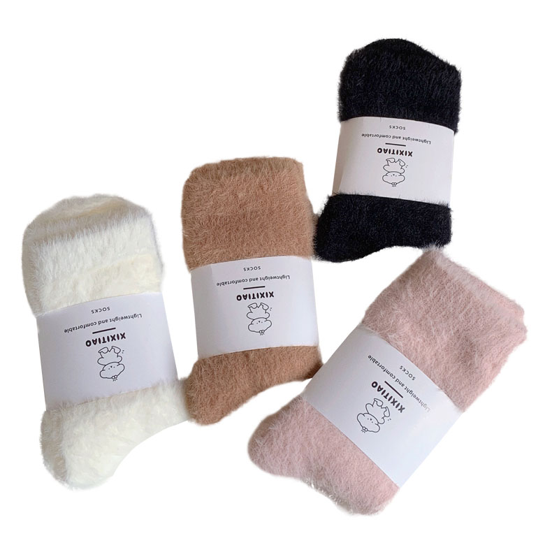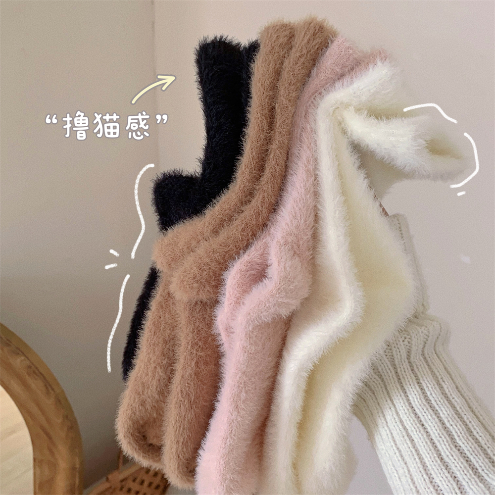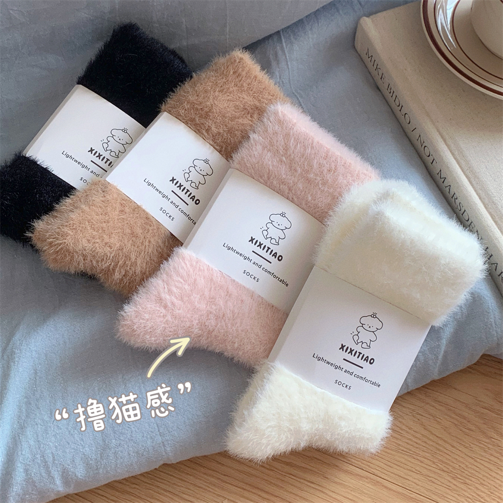 细细条 冬天保暖毛毛袜子女水貂毛中筒袜加厚居家毛茸睡眠月子袜