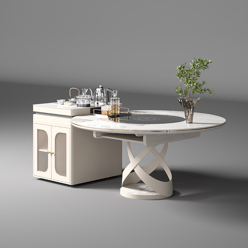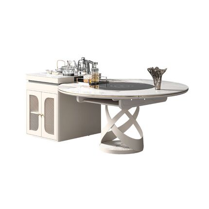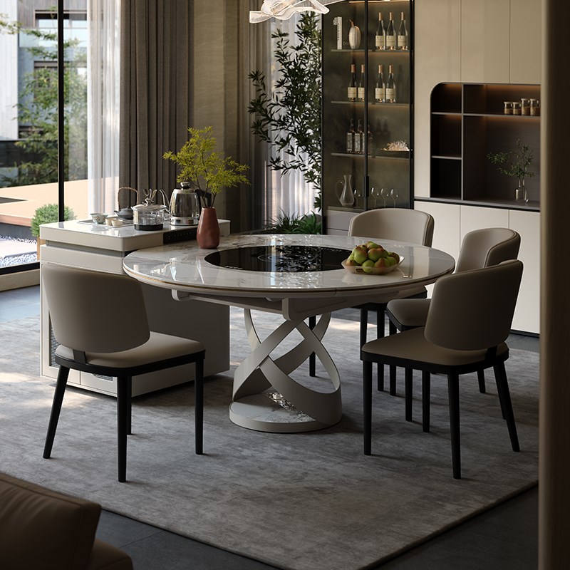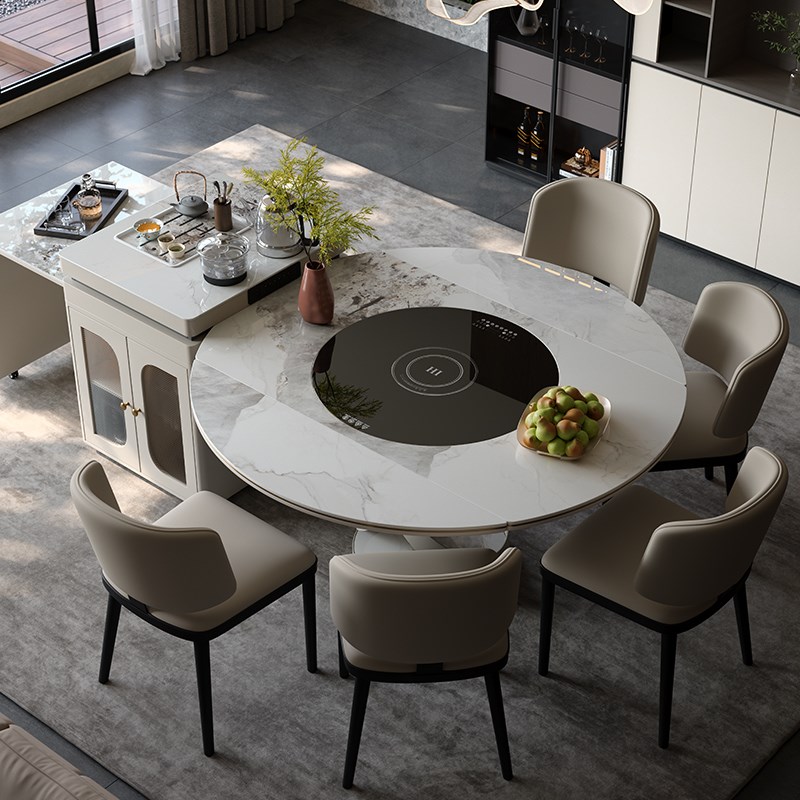 新款岩板独立岛台餐桌一体可伸缩家用高级感现代简约智能折叠圆桌