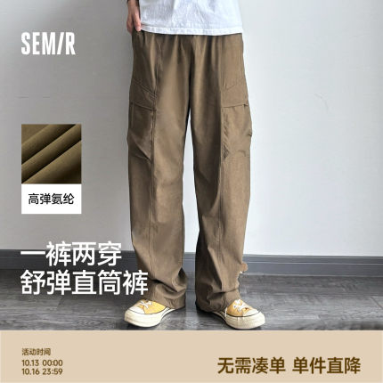 森马休闲裤男户外风宽松直筒工装裤夏季长裤线格肌理感裤子纯色潮