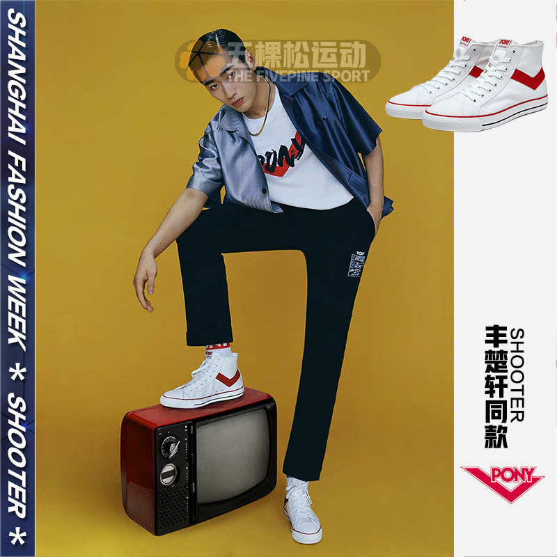 PONY女鞋帆布鞋高帮夏季新款学生韩版时尚情侣休闲鞋复古运动鞋男
