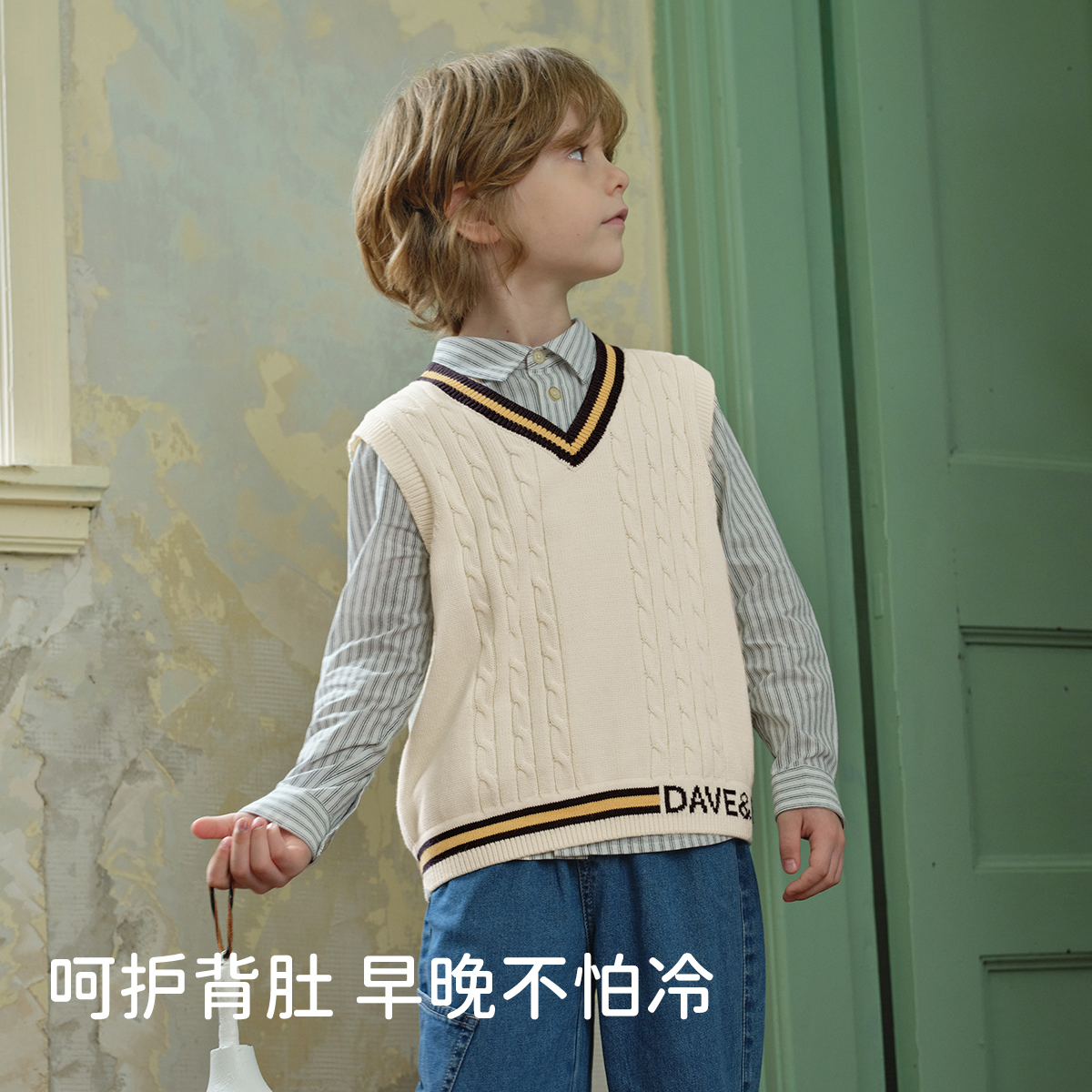 戴维贝拉男童毛衣背心2025秋季新款女童学院风马甲儿童针织衫童装