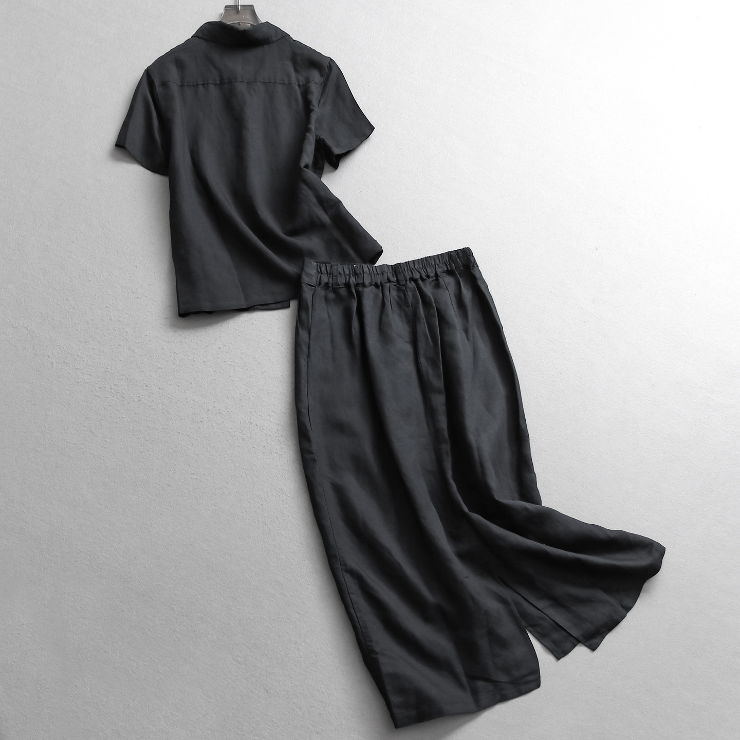 纯色凉感透气翻领短袖衬衫可配一整套半身裙女通勤时尚套装C893