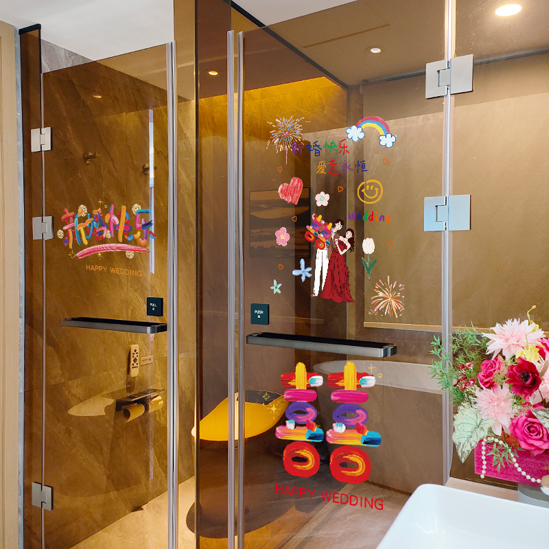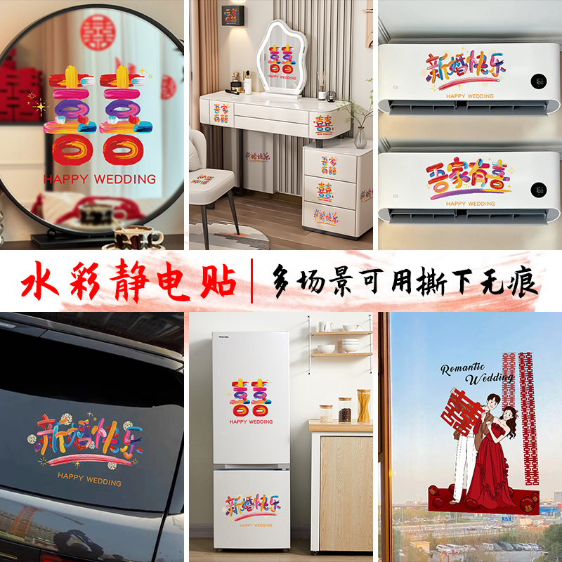 结婚喜字贴静电贴婚房布置装饰镜子窗户家具车贴无痕玻璃彩色贴纸