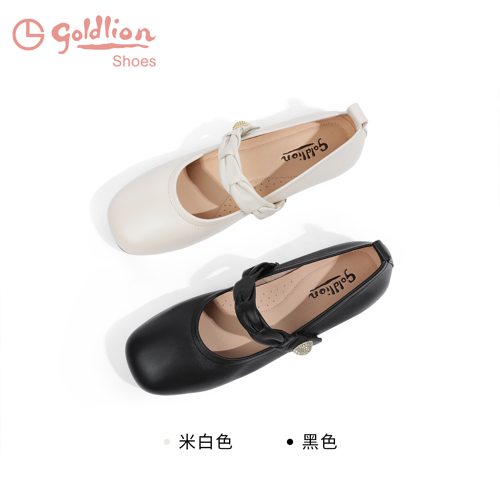 金利来女鞋春秋新款时尚方头黑色浅口平底休闲魔术贴玛丽珍单鞋女