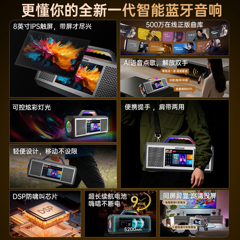 威斯汀E3智能蓝牙歌词音箱家用户外K歌麦克风一体充电新款家庭KTV