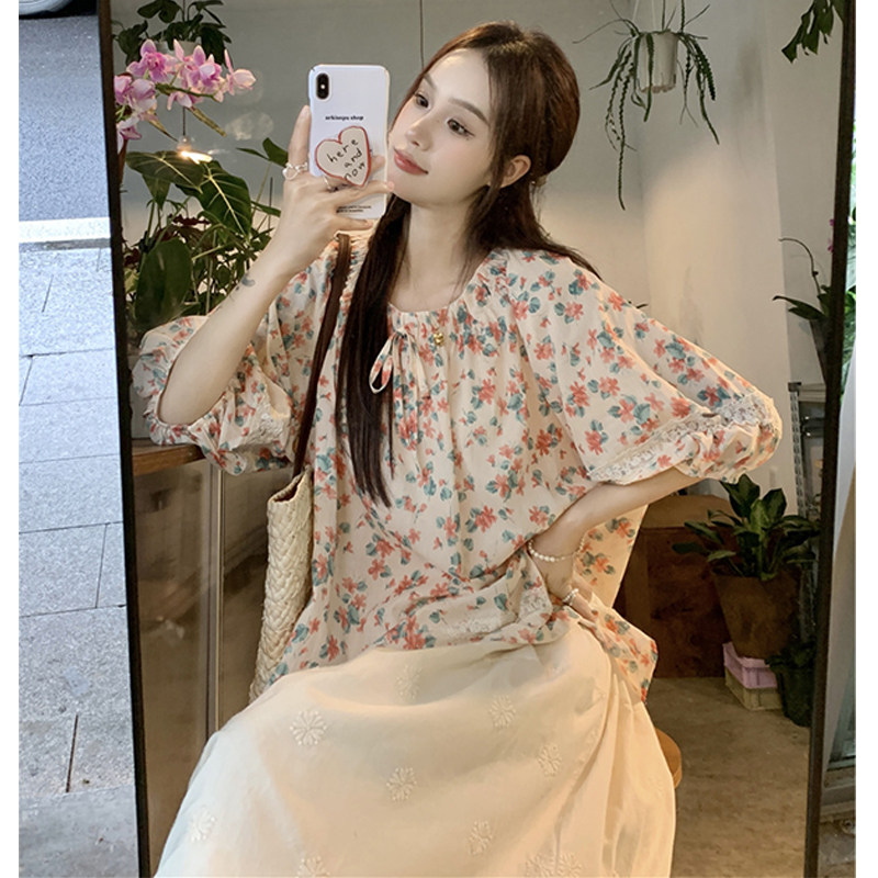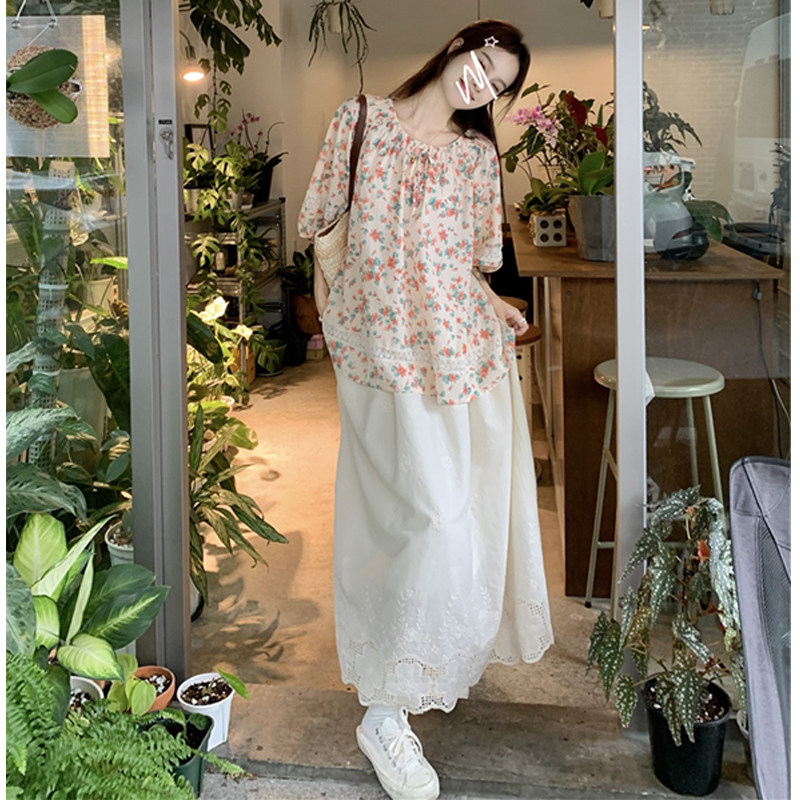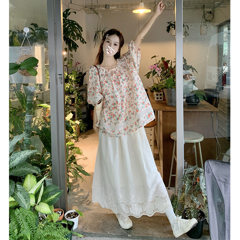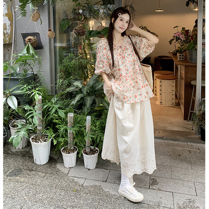 复古蕾丝碎花娃娃衫+花边半身裙