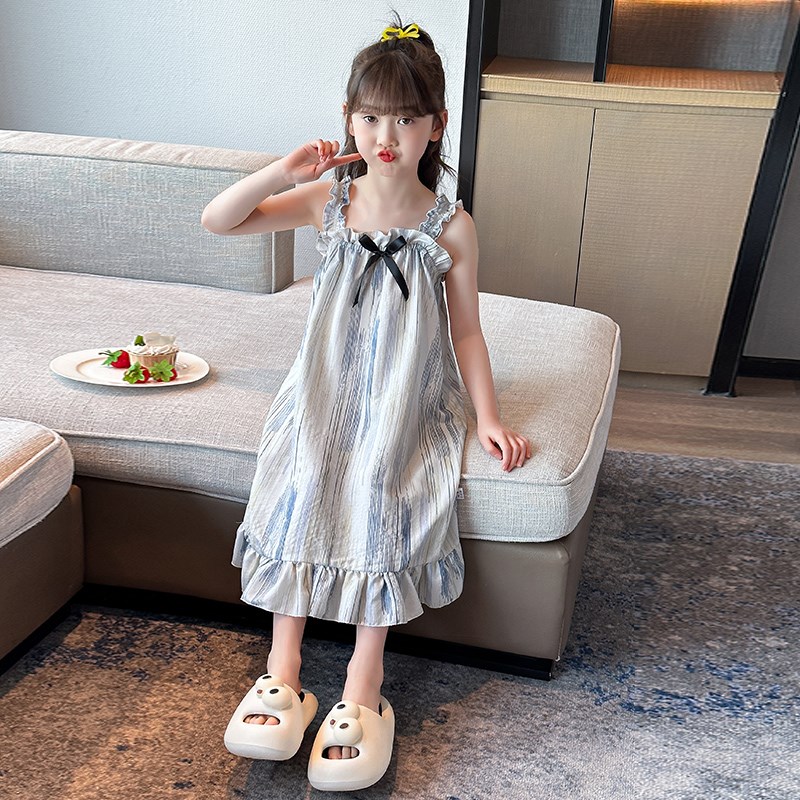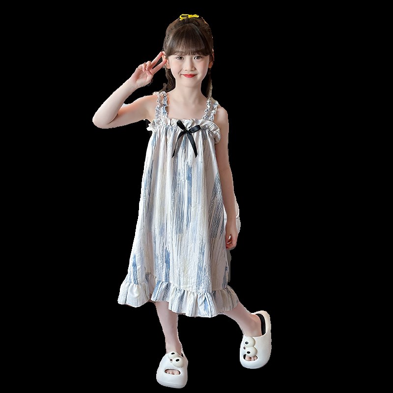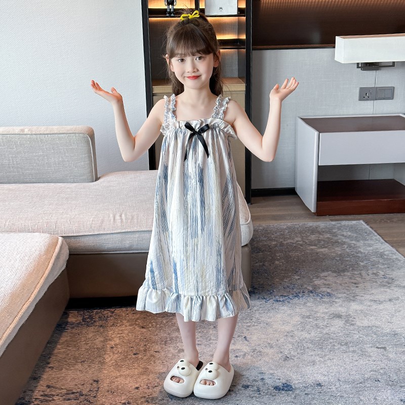 女童睡衣202h4年夏季新款公主女孩宝宝吊带睡裙儿童夏款家居服裙