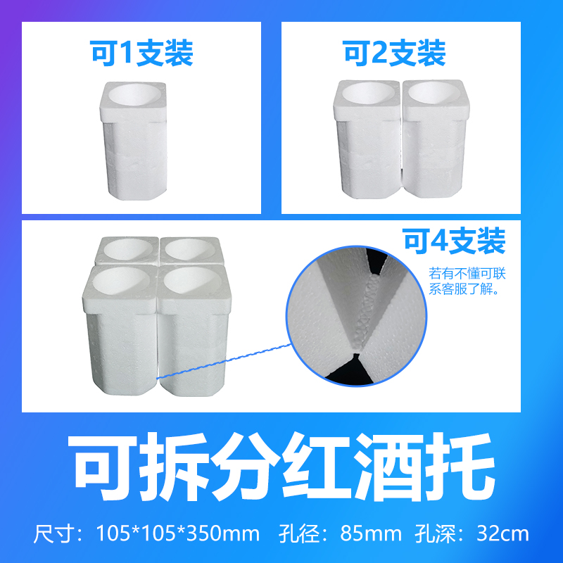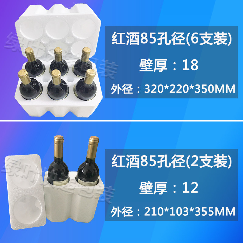 红酒泡沫箱1支2支6支装68/85/95孔径香槟鸡尾酒快递专用箱泡沫盒