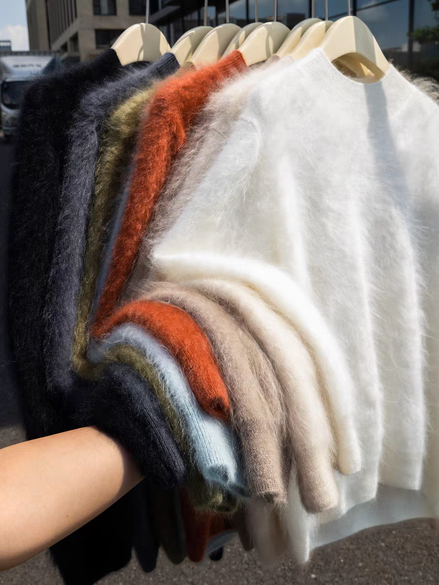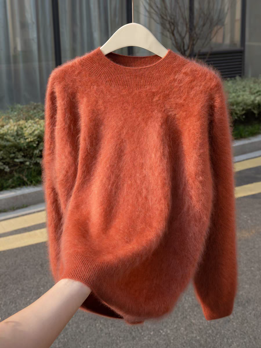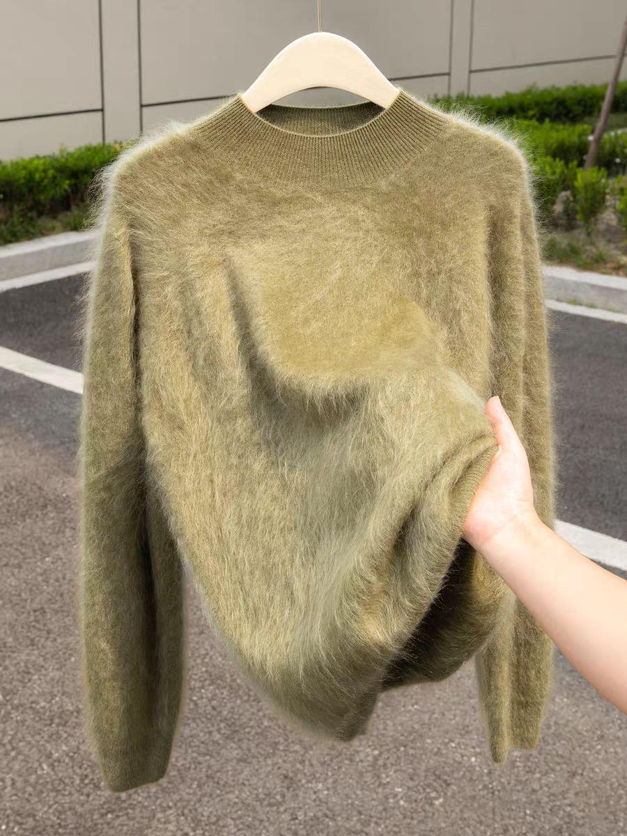 云雾感拉毛100%山羊绒衫女半高领氛围感拉绒长袖长毛宽针织松毛衣