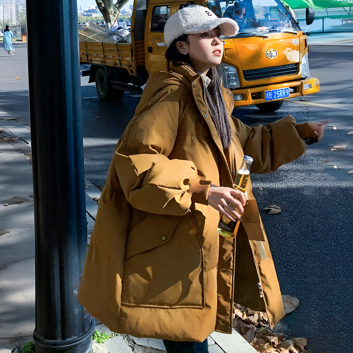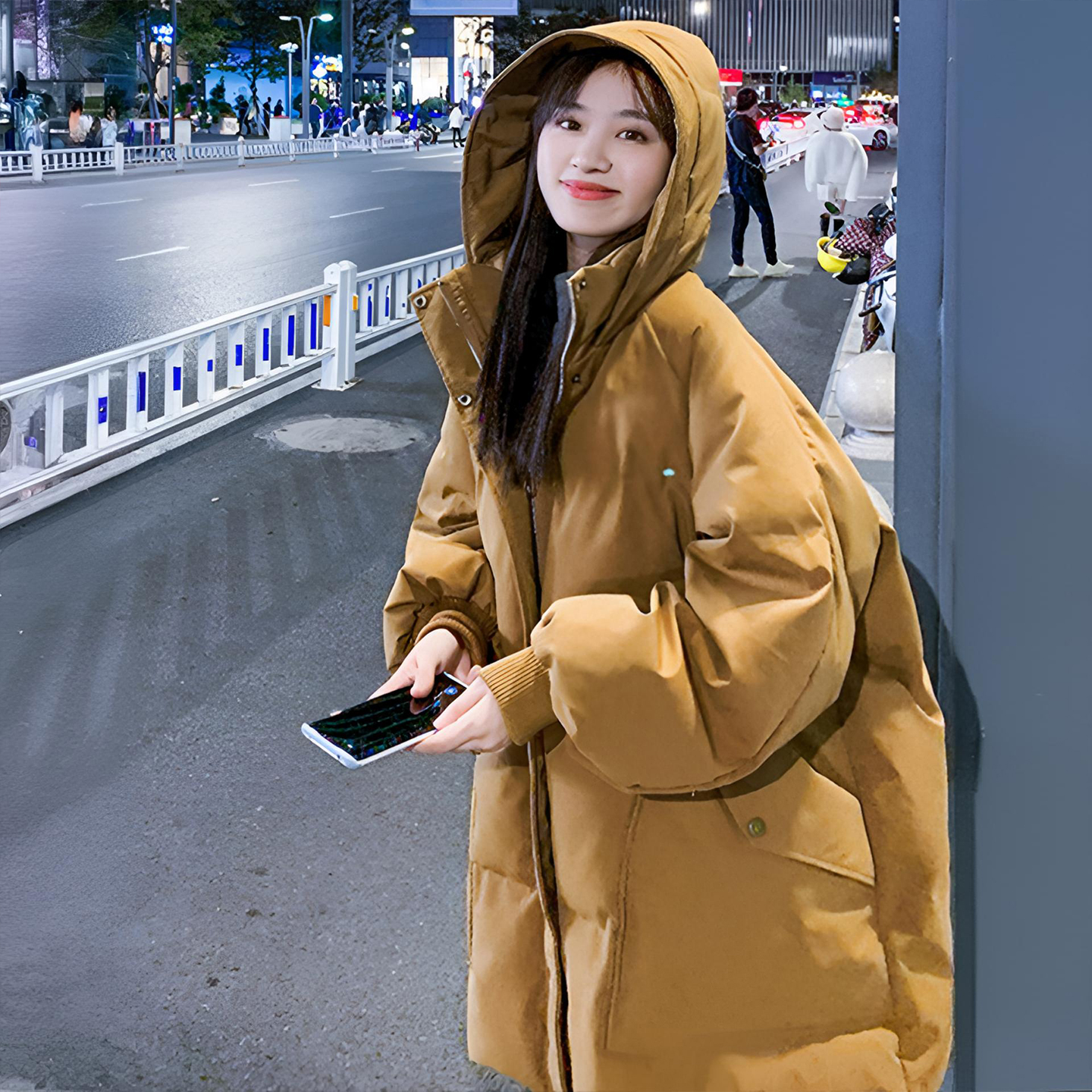 胖mm特大码枯茶色连帽棉服外套女秋冬新款休闲风遮肉显瘦保暖上衣