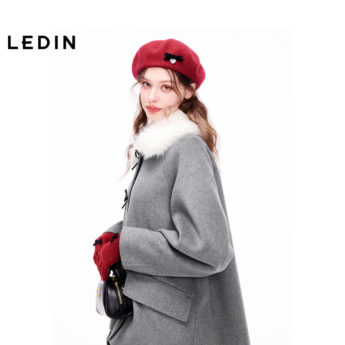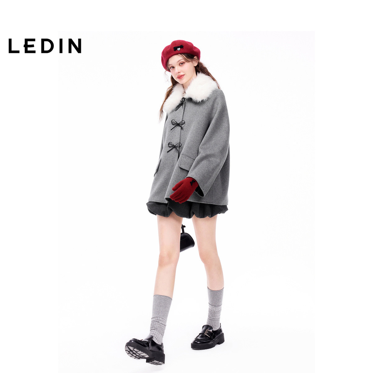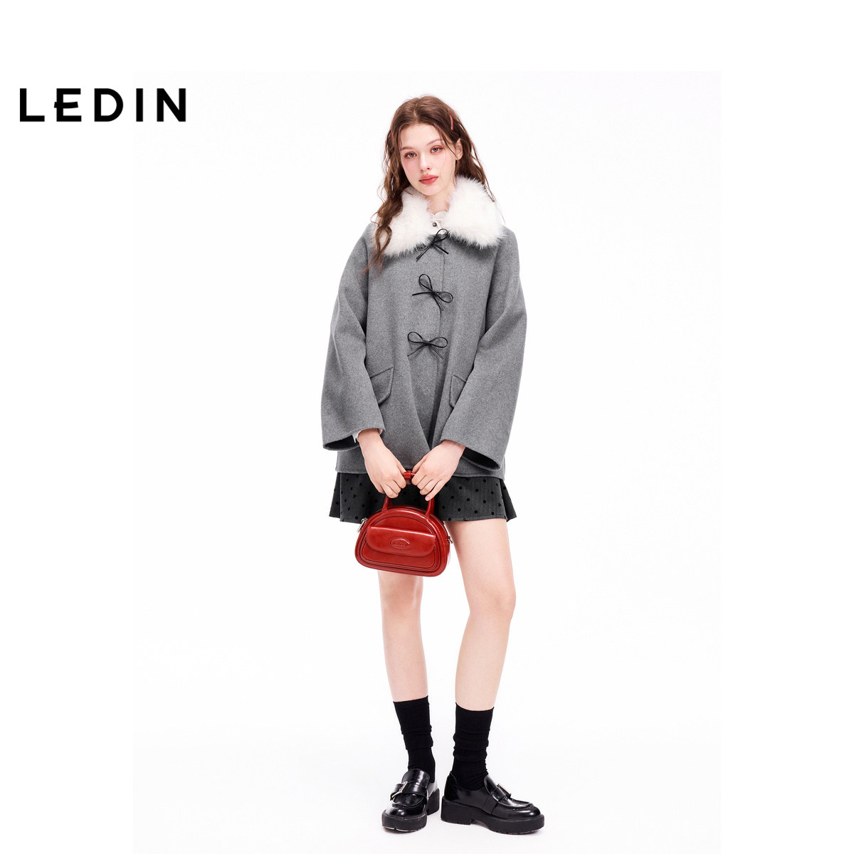 【商场同款】乐町2024冬季新款蝴蝶结装饰毛呢外套大衣C1AAE4302